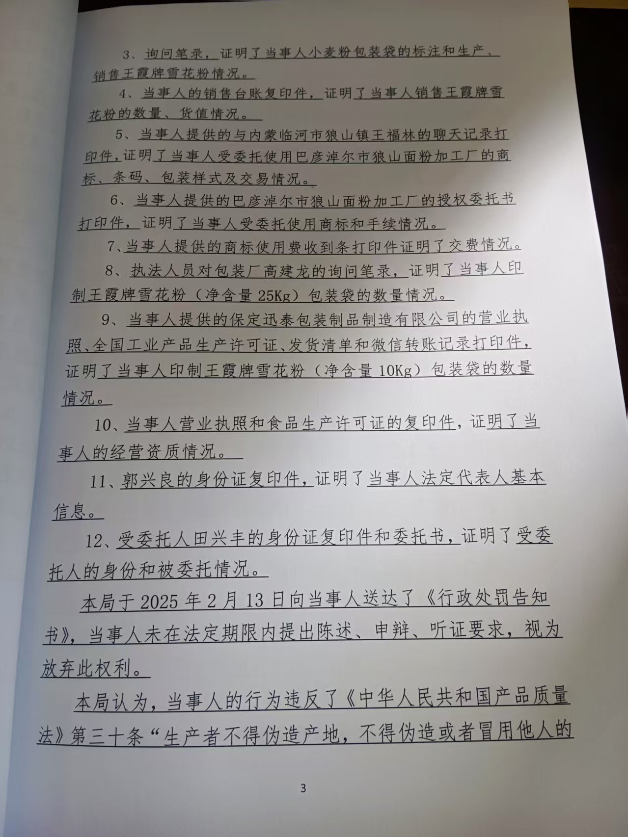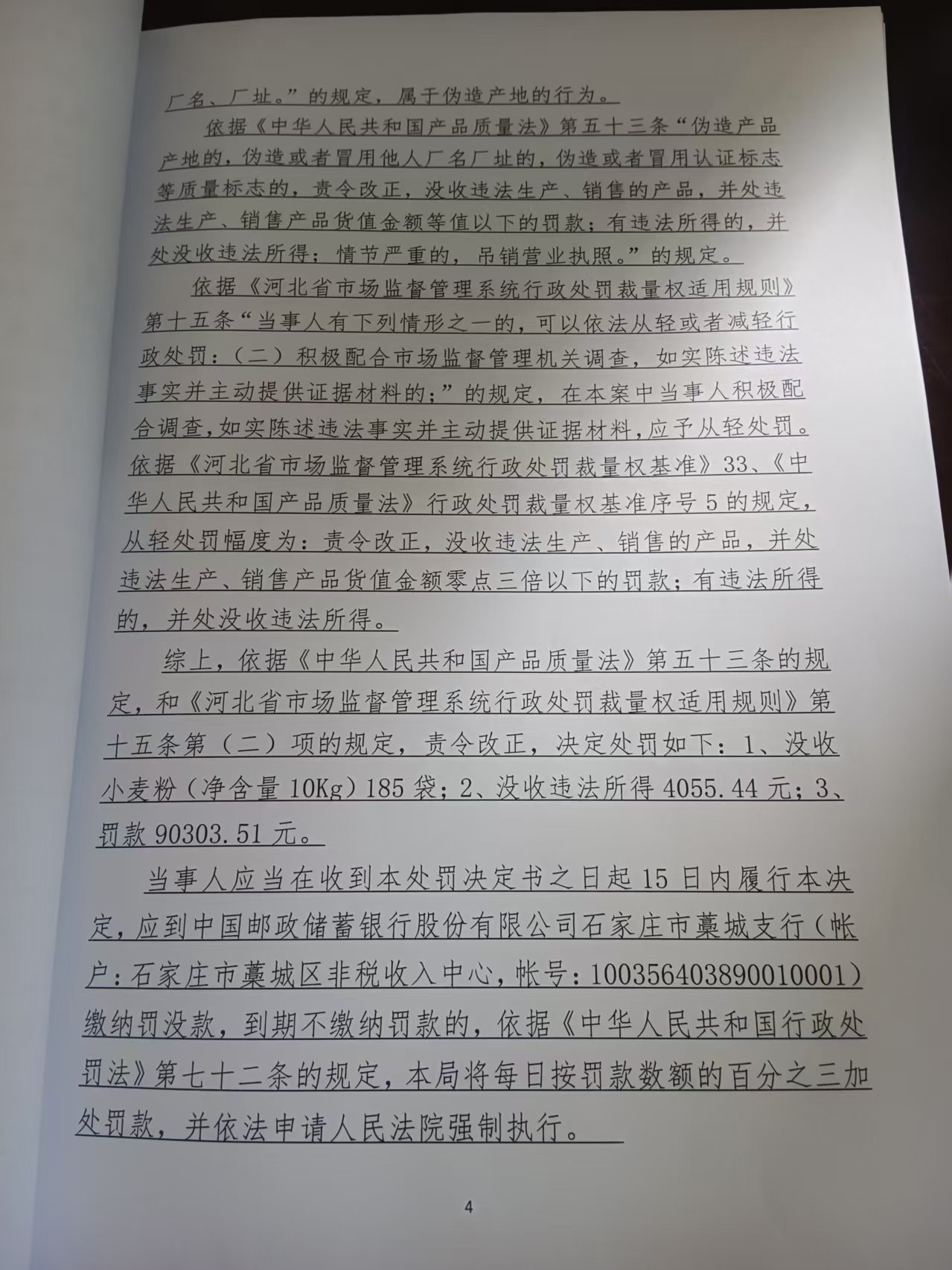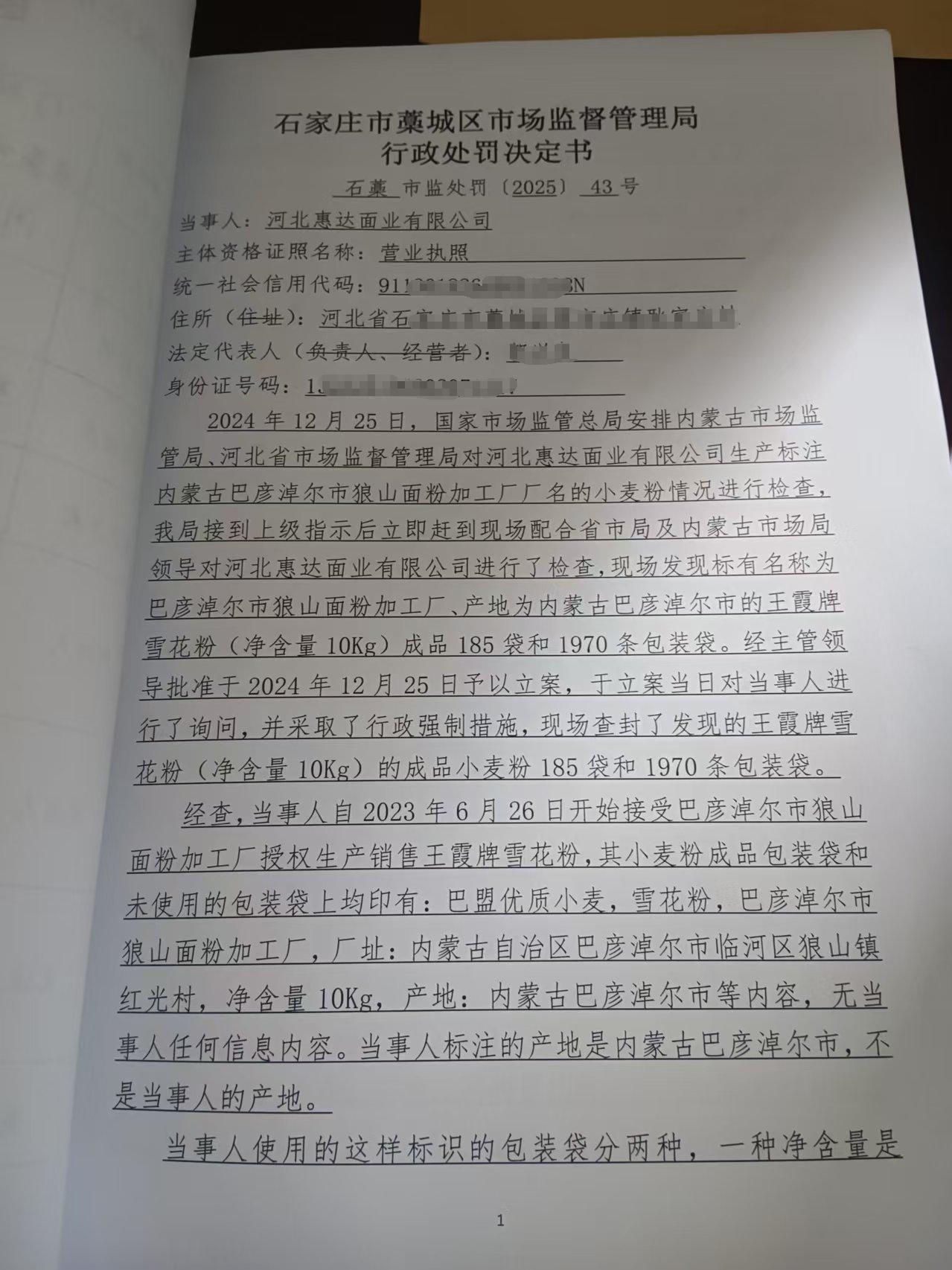 河北惠达面业有限公司伪造产地生产销售小麦粉案 石藁市监处罚〔2025〕43号