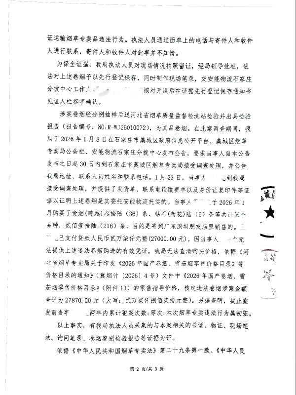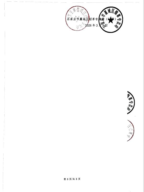 藁城区烟草专卖局2026年03月第2周行政处罚案件公示