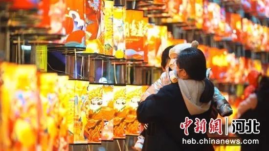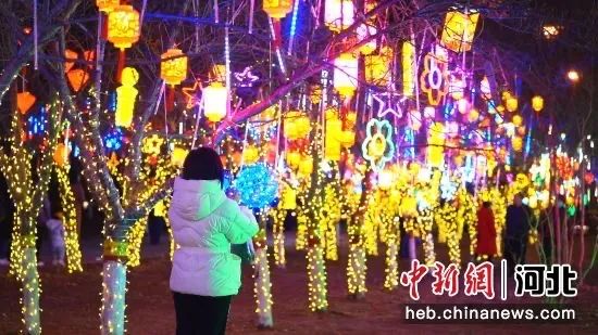 藁城区人民广场花灯璀璨,吸引群众驻足观看。王俭 摄