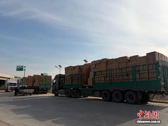 12月26日,屯头村口正在装货的运输车辆,准备将灯笼发往全国各地。 李玉素 摄