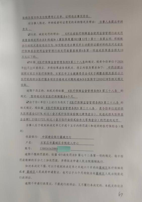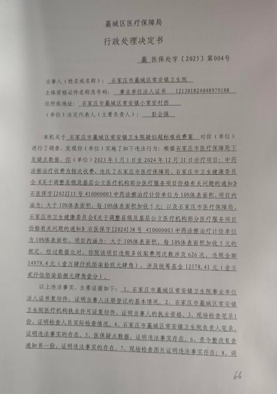 藁城区医疗保障局行政处理决定书藁医保处字〔2025〕第004号