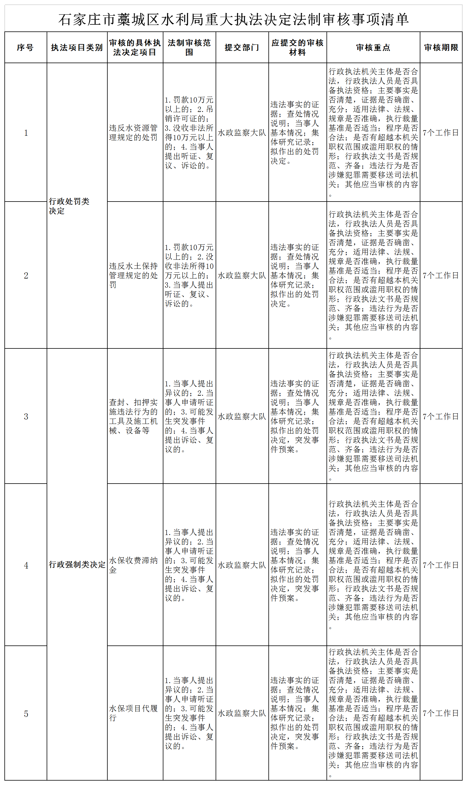 石家庄市藁城区水利局重大行政执法决定法制审核清单