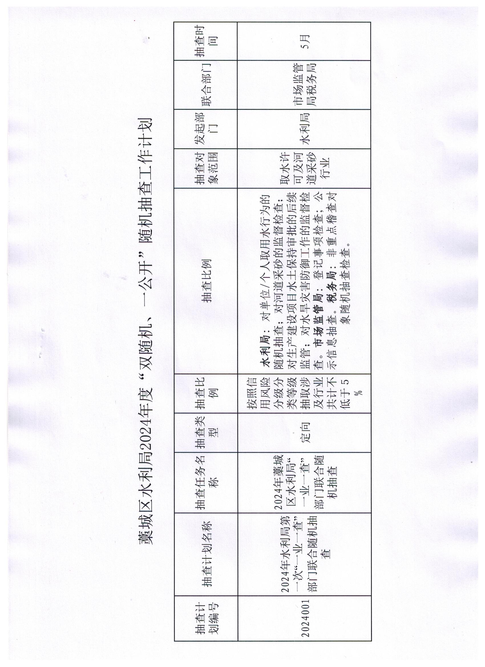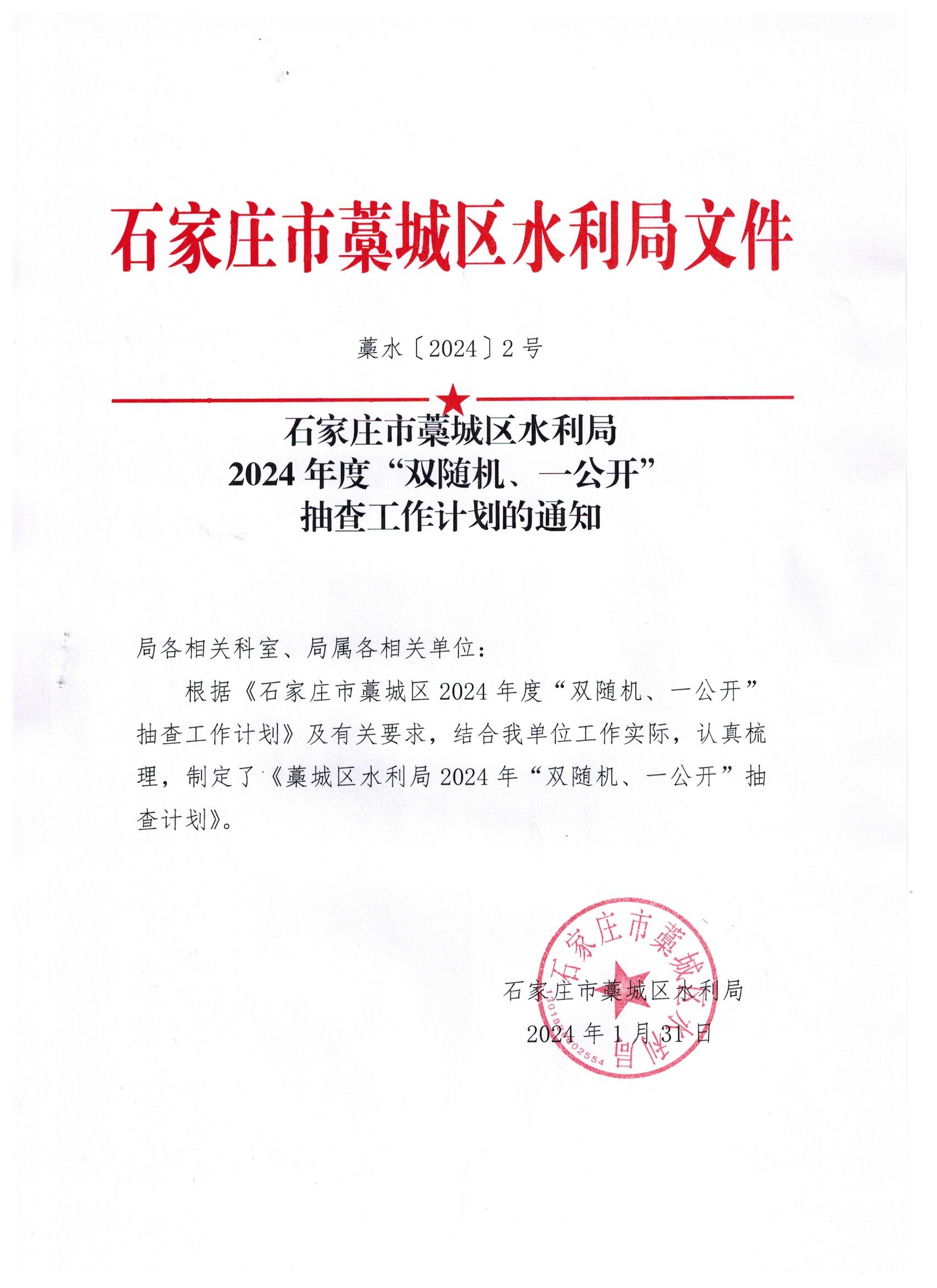 石家庄市冀城区水利局2024年度“双随机、一公开”抽查工作计划的通知