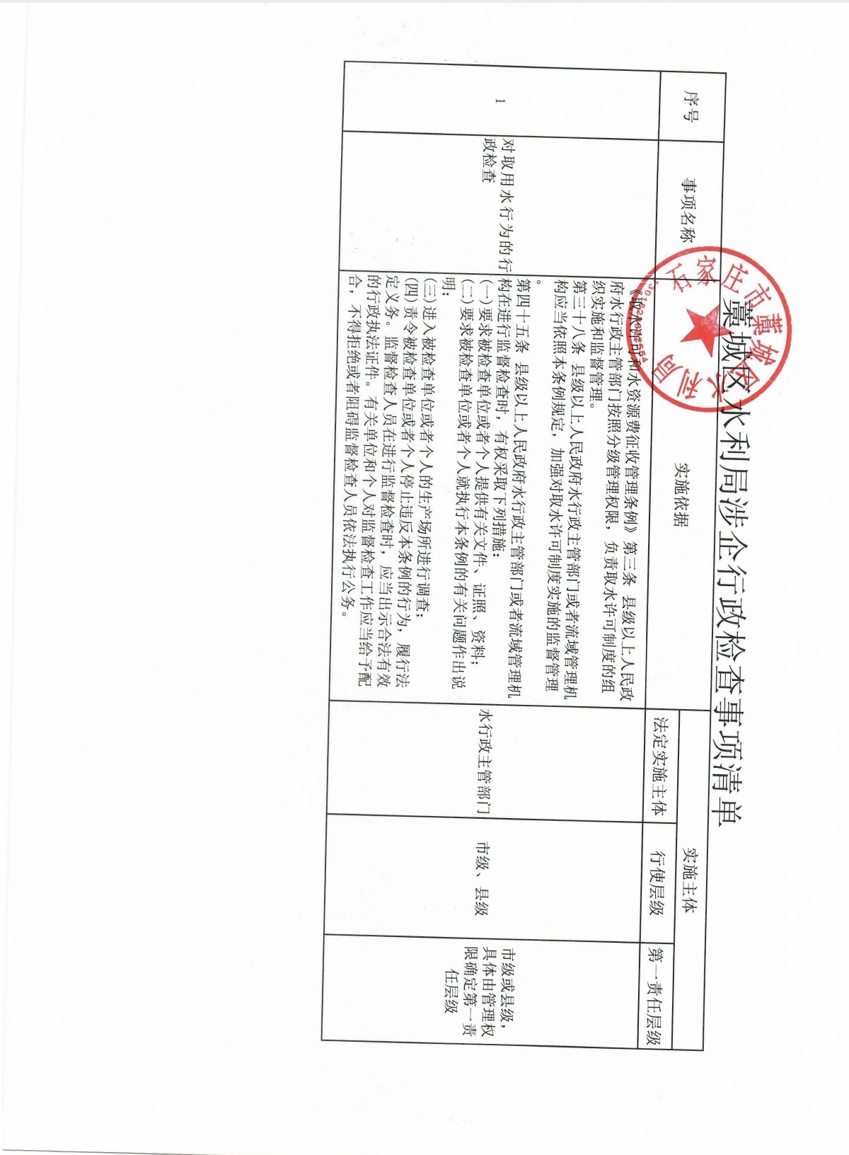 藁城区水利局涉企行政检查事项清单