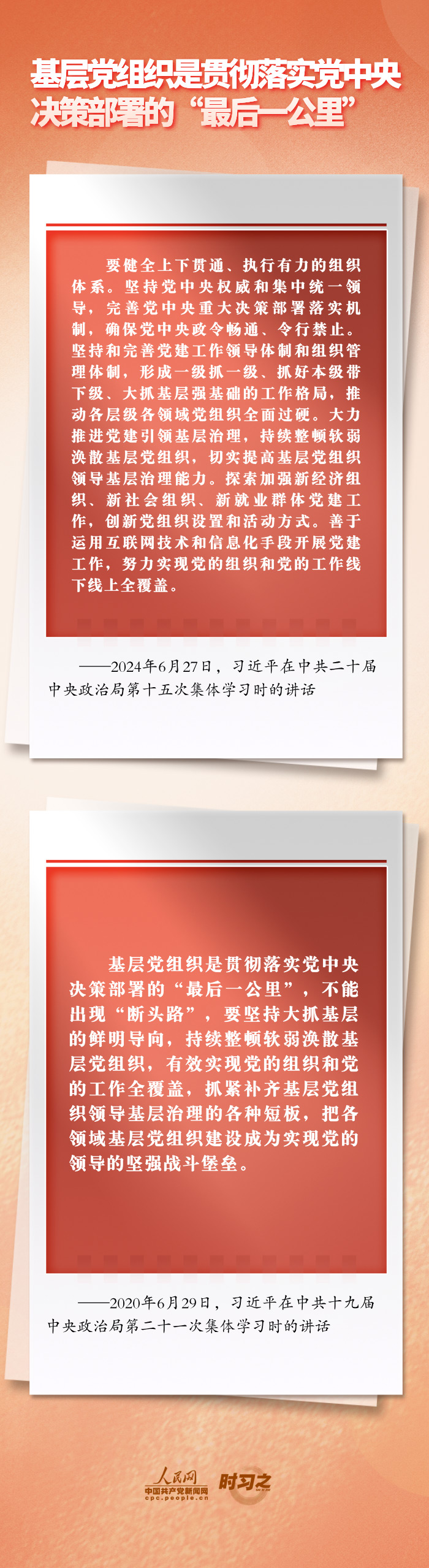 基础不牢,地动山摇。习近平总书记强调,基层党组织是贯彻落实党中央决策部署的“最后一公里”。