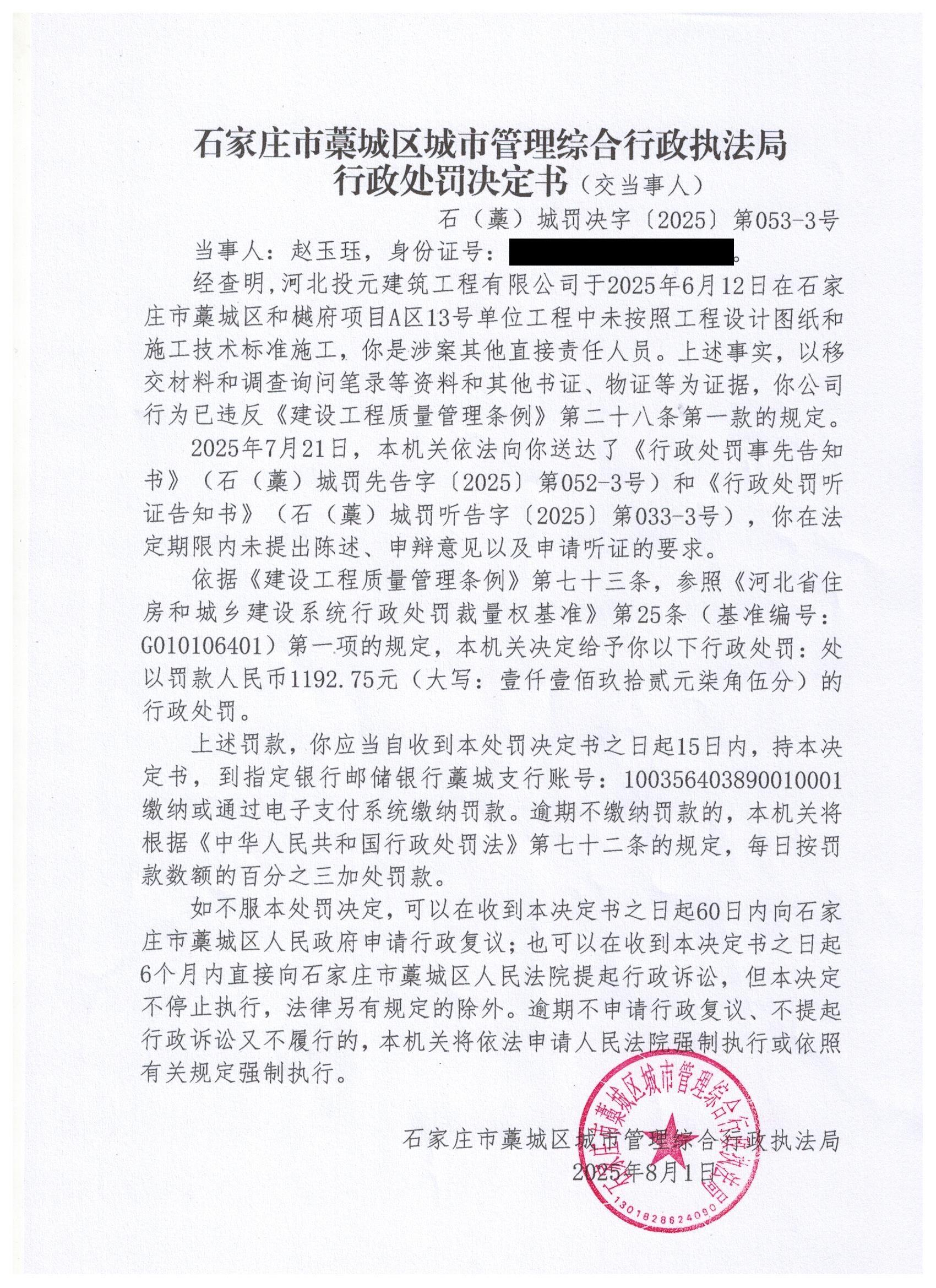 藁城区城市管理综合行政执法局行政处罚决定书053-3