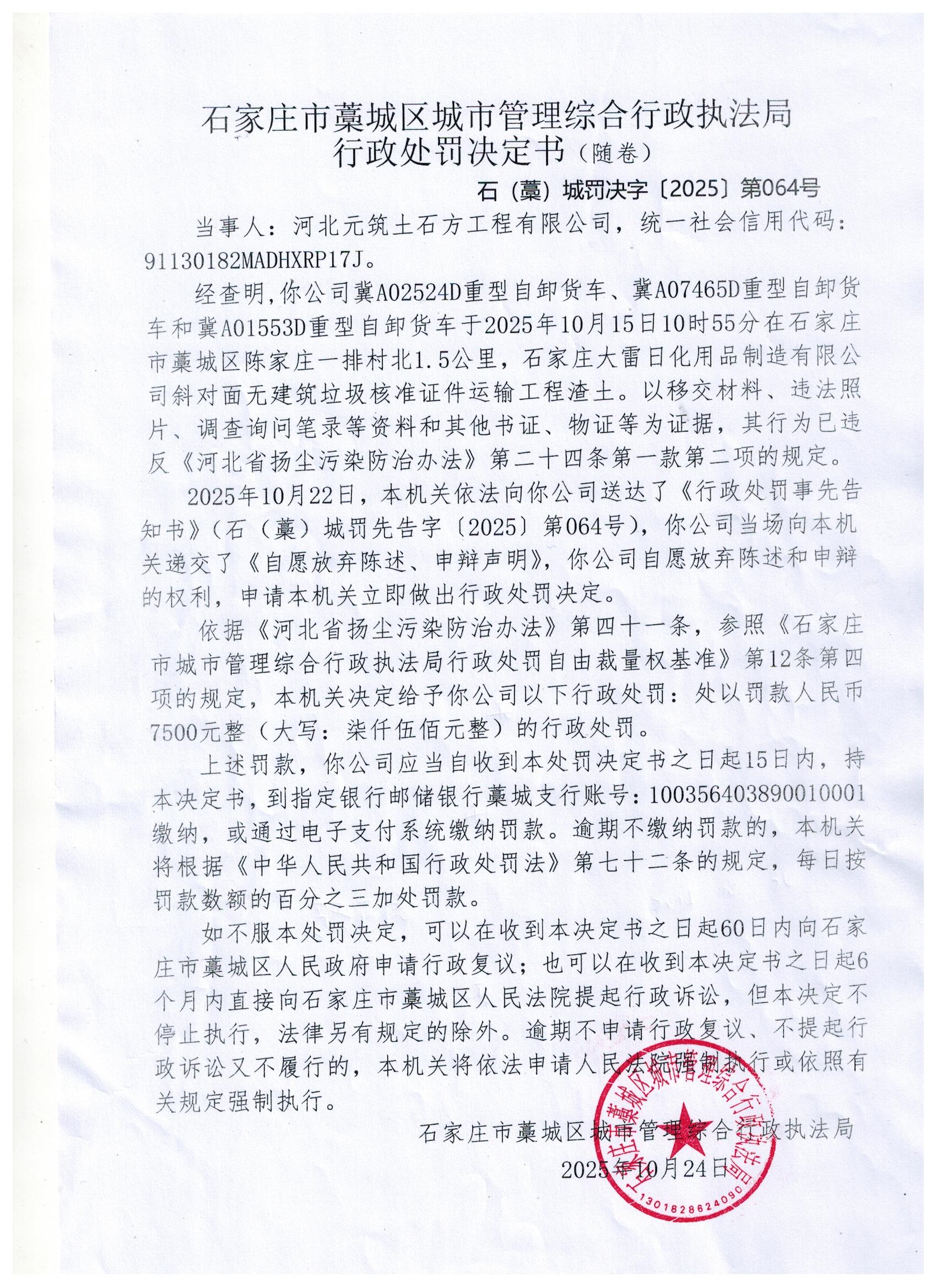藁城区城市管理综合行政执法局行政处罚决定书064