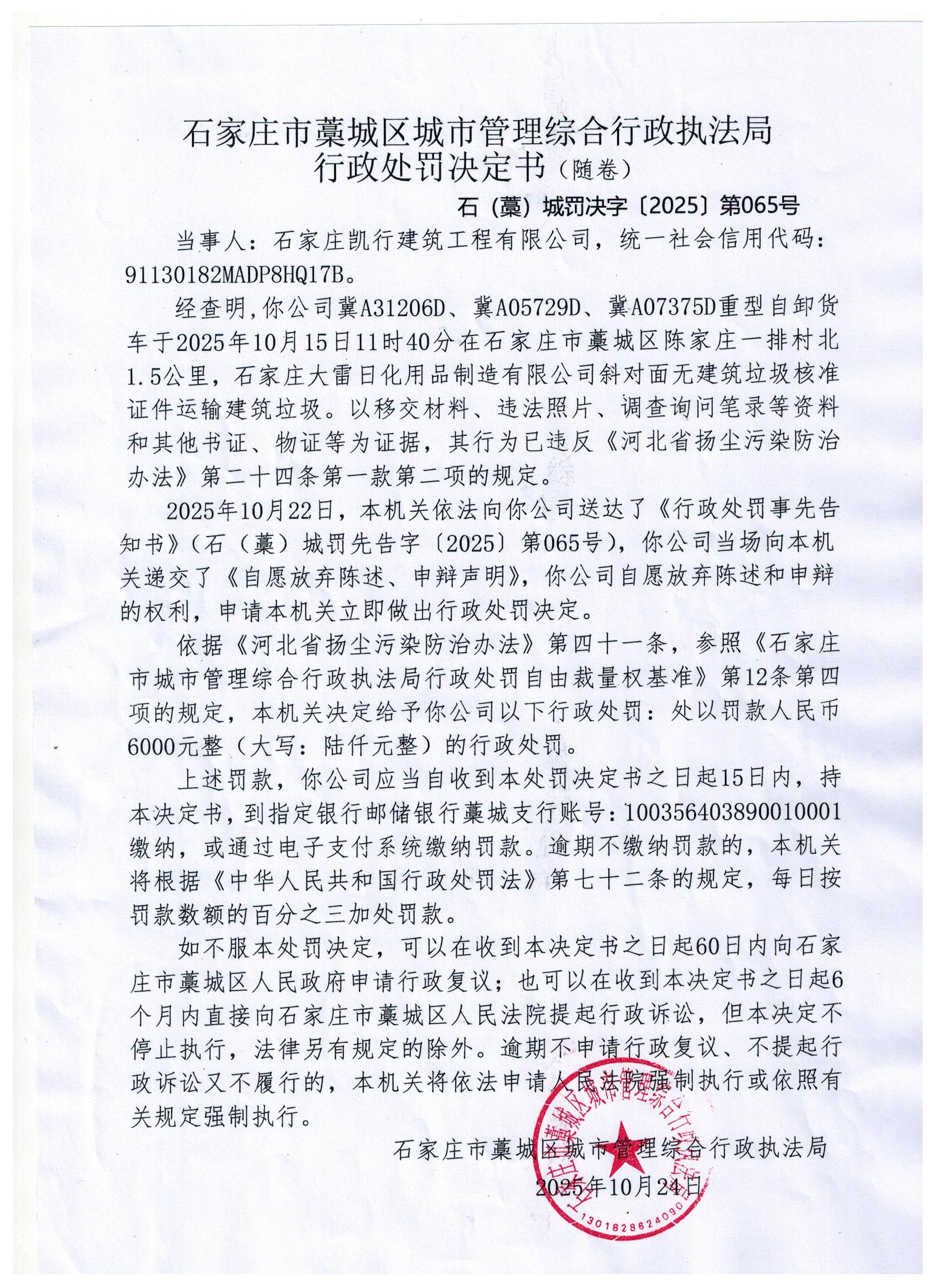 藁城区城市管理综合行政执法局行政处罚决定书065