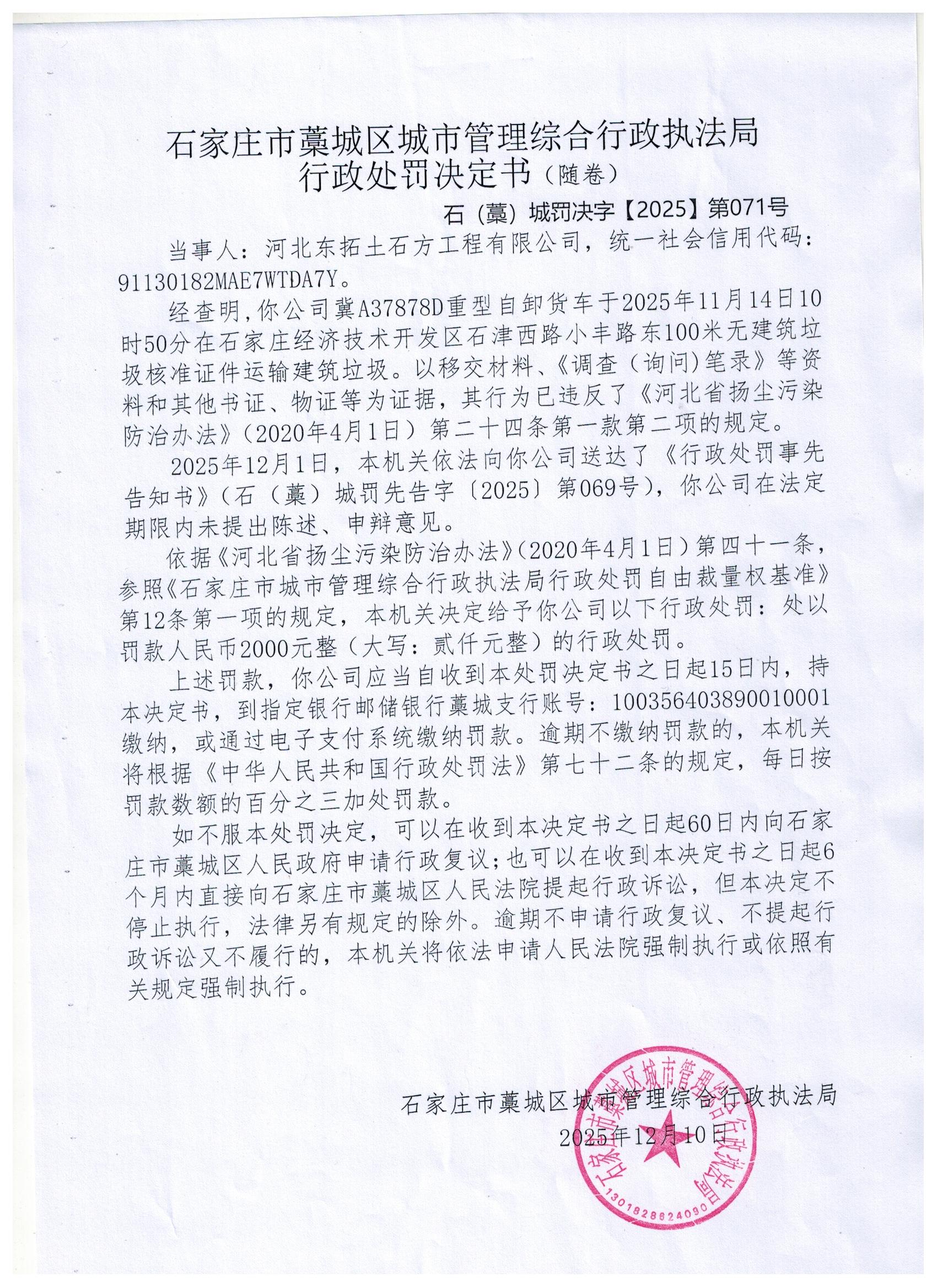 藁城区城市管理综合行政执法局行政处罚决定书071