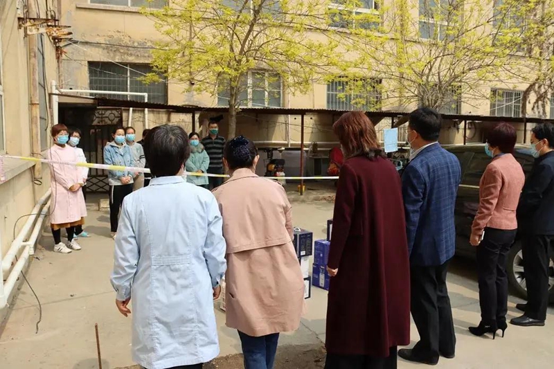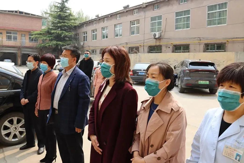 4月7日上午,在院党委书记、院长党军带领下,副院长张瑞娥、韩景宣、秦慧选和护理部主任杨玉英、办公室主任吴月芬来到隔离病房所在地(原疾控中心院内),看望第五救治梯队的医护人员,把藁医人的关心和慰问带给坚守抗疫一线的人员。