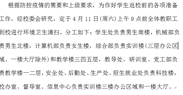 春色满园迎学至,紧张忙碌待你归。根据防控疫情的需要和上级要求,为做好学生返校前的各项准备工作。4月11日上午,在校领导的带领下,藁城区职教中心全体教职工一起开展环境清扫活动。