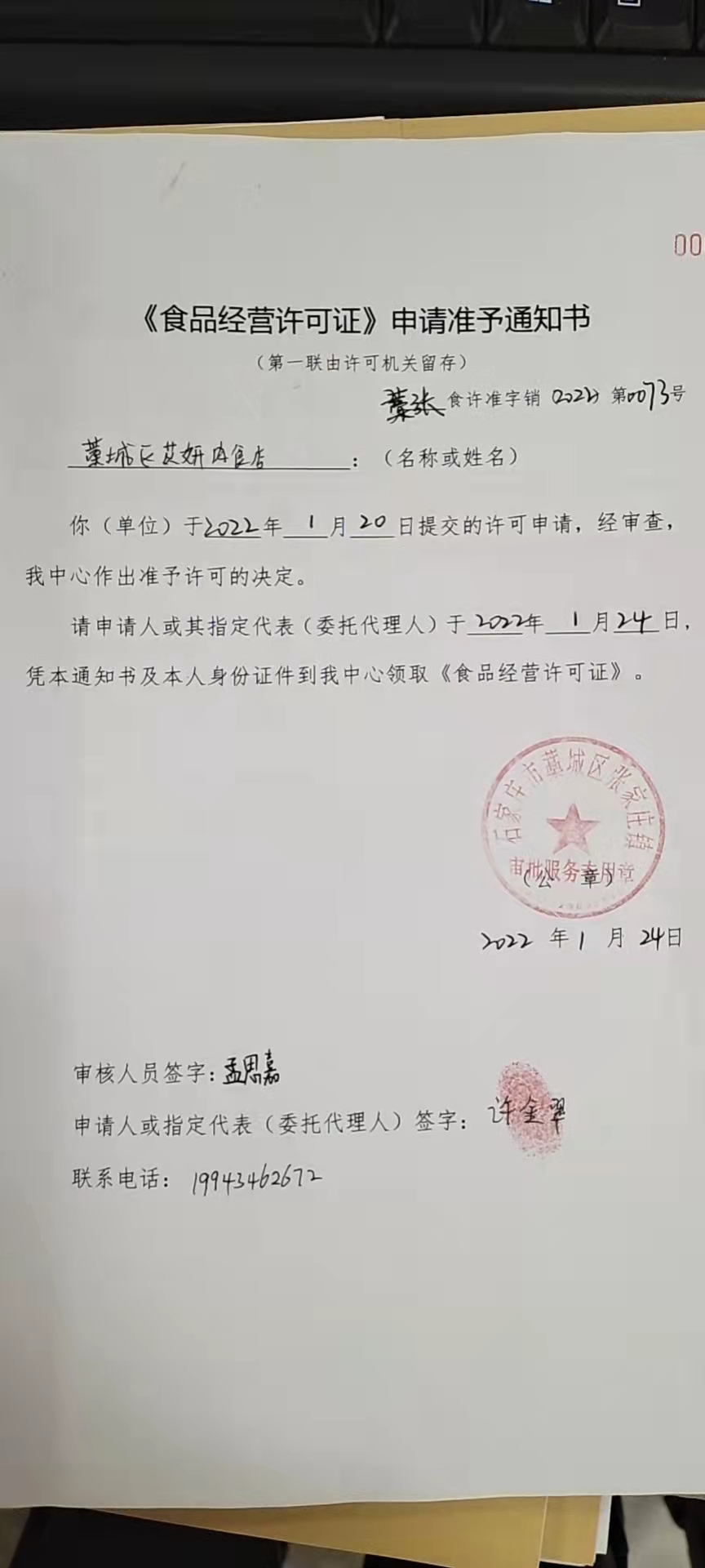 藁城区苡妍肉食店新办食品经营许可证