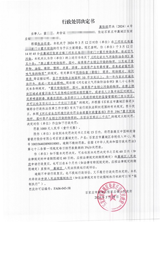 藁张综罚决〔2024〕4号