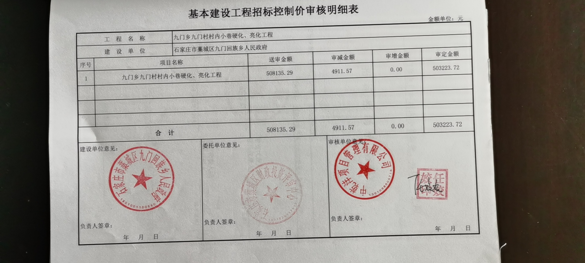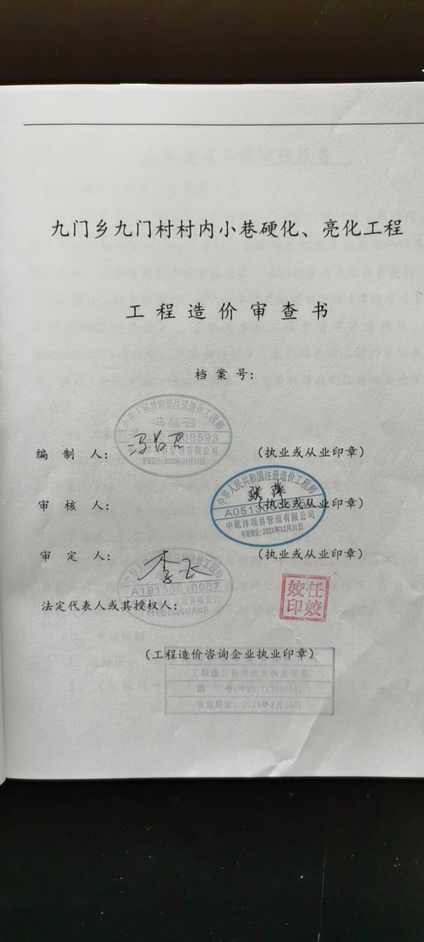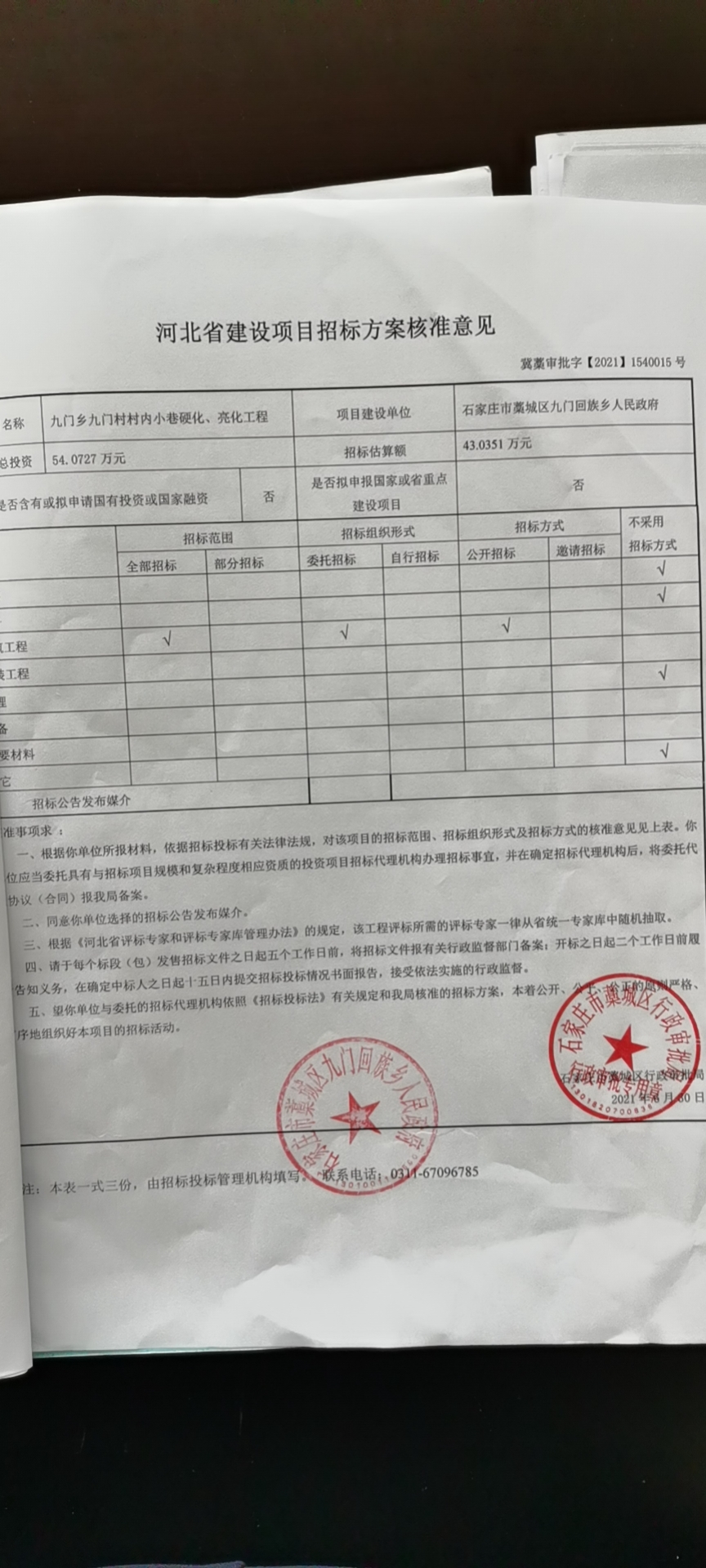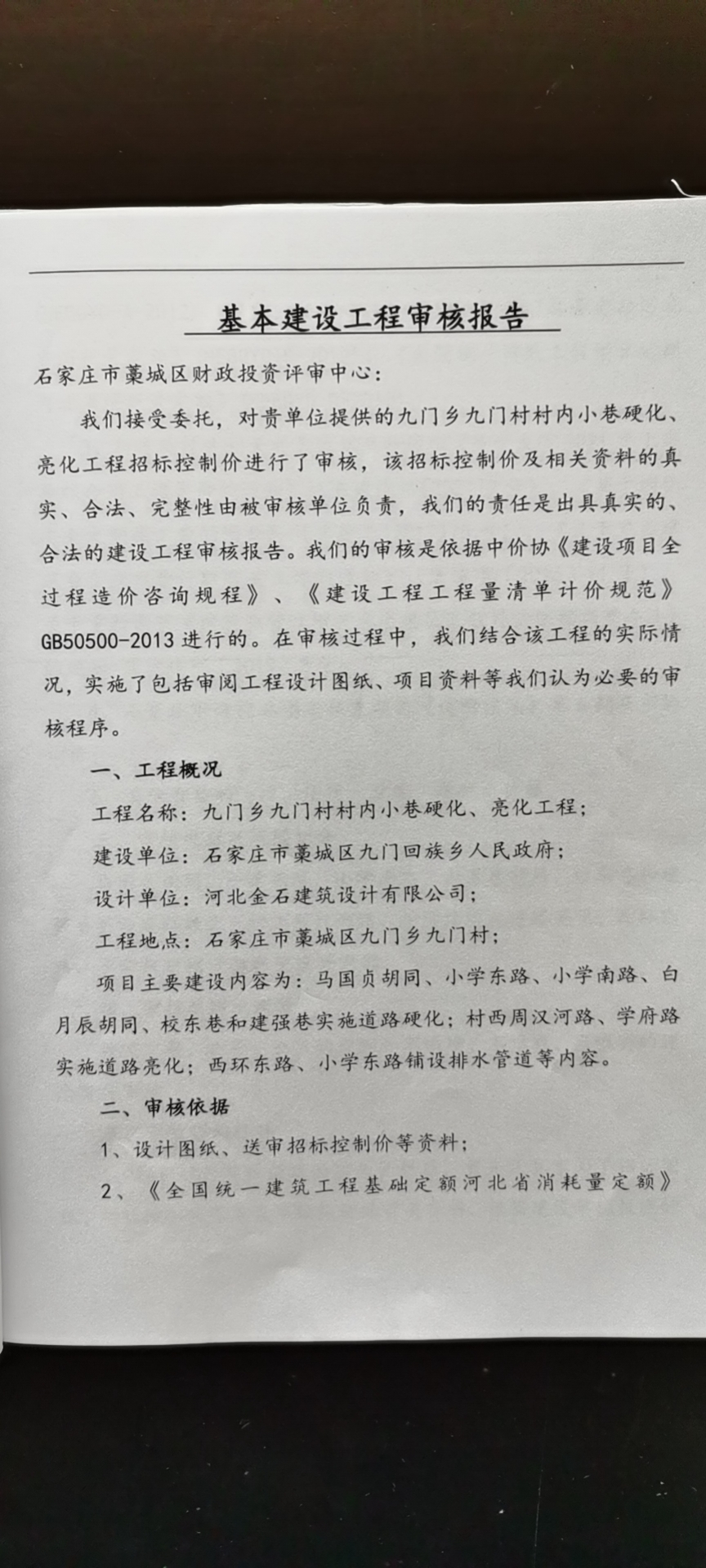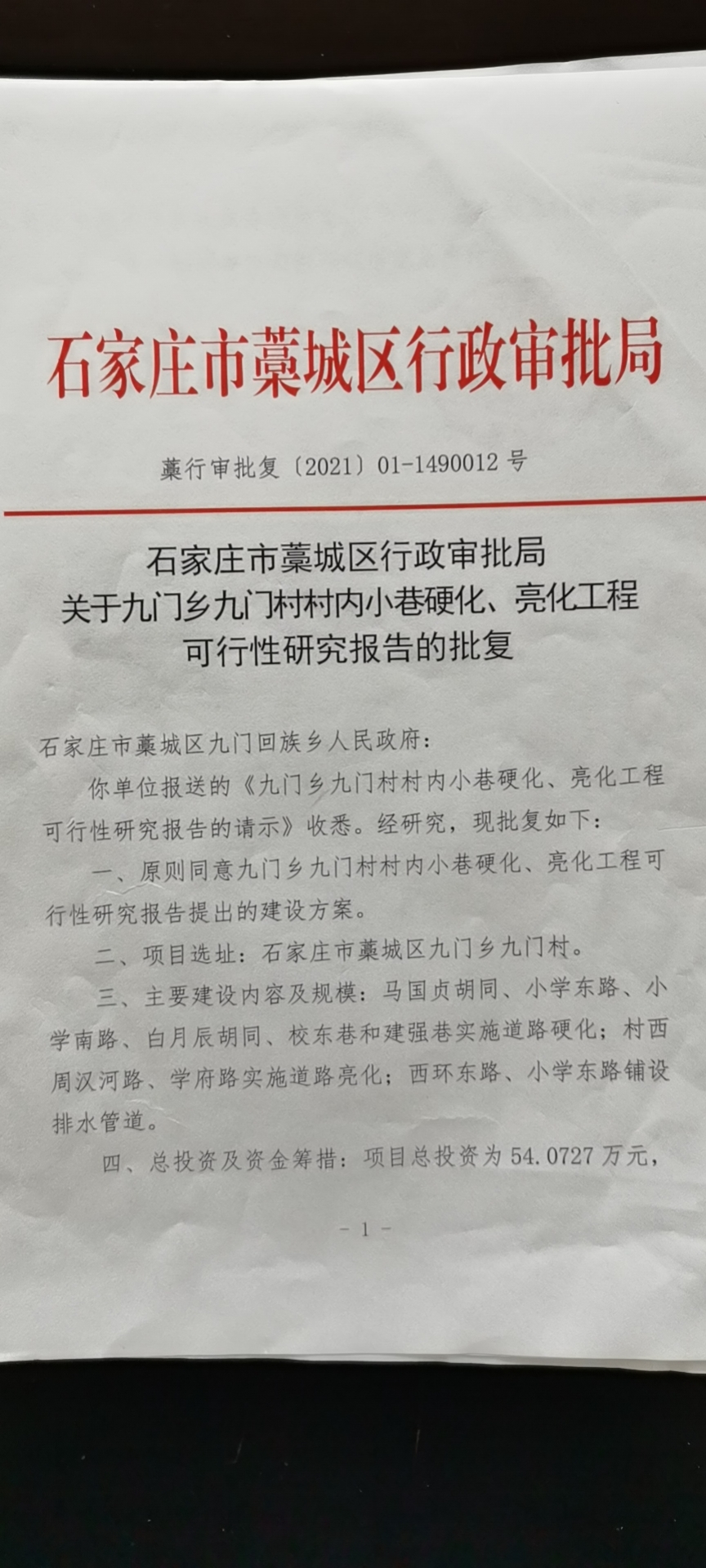 藁城区九门回族乡九门村村内小街小巷硬化工程立项批复、评审报告