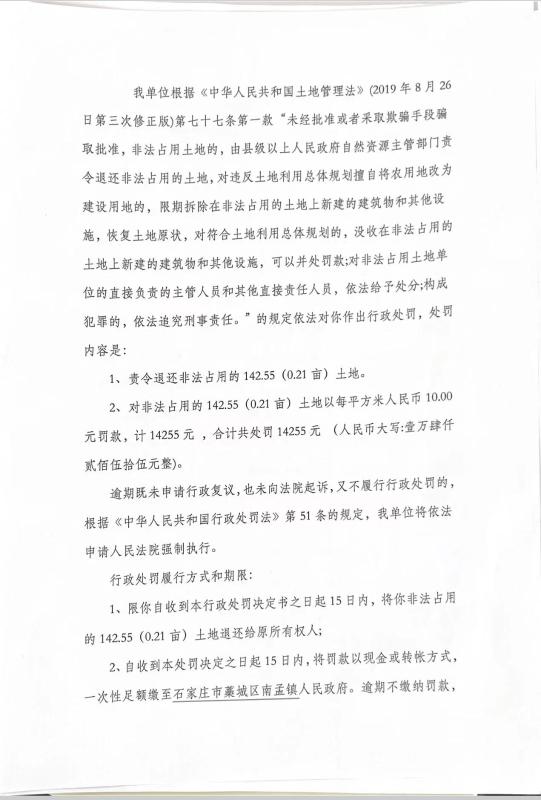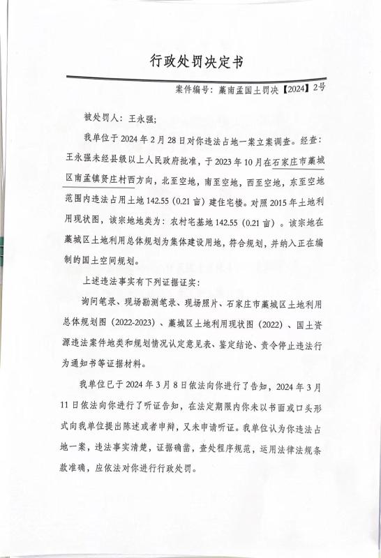 藁城区南孟镇关于王永强未经批准建住宅楼案