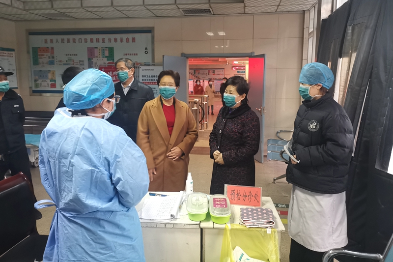 袁丽华区长到区人民医院检查指导防控救治工作,区领导孟翠珍陪同。
