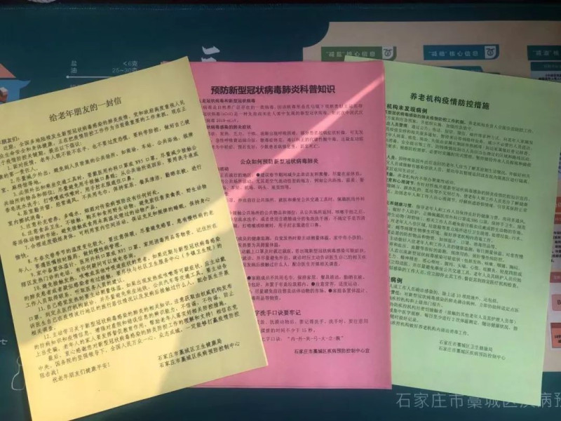 区疾控中心印制20万份预防新型冠状病毒感染的肺炎科普知识明白纸,发放给居民,让群众正确面对疫情,科学防控,避免恐慌,尽量做到宅(家里)、戴(口罩)、勤(洗手)。