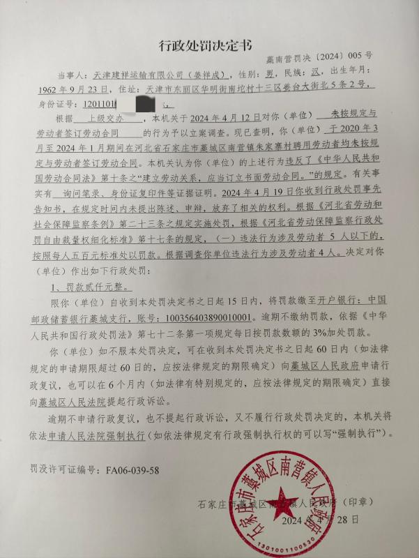 藁南营罚决【2024】005号