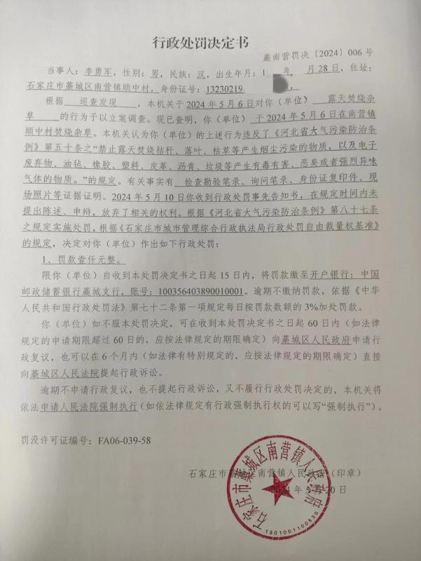 藁南营罚决【2024】006号