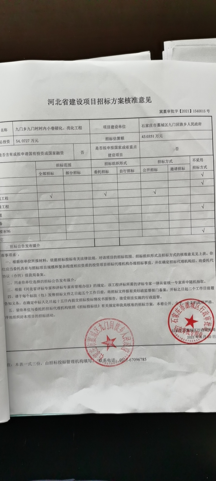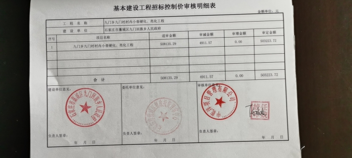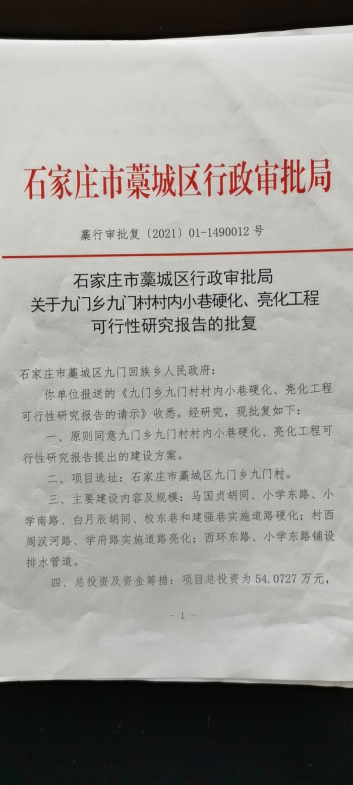 藁城区九门乡九门村村内小街小巷硬化工程立项批复、评审报告