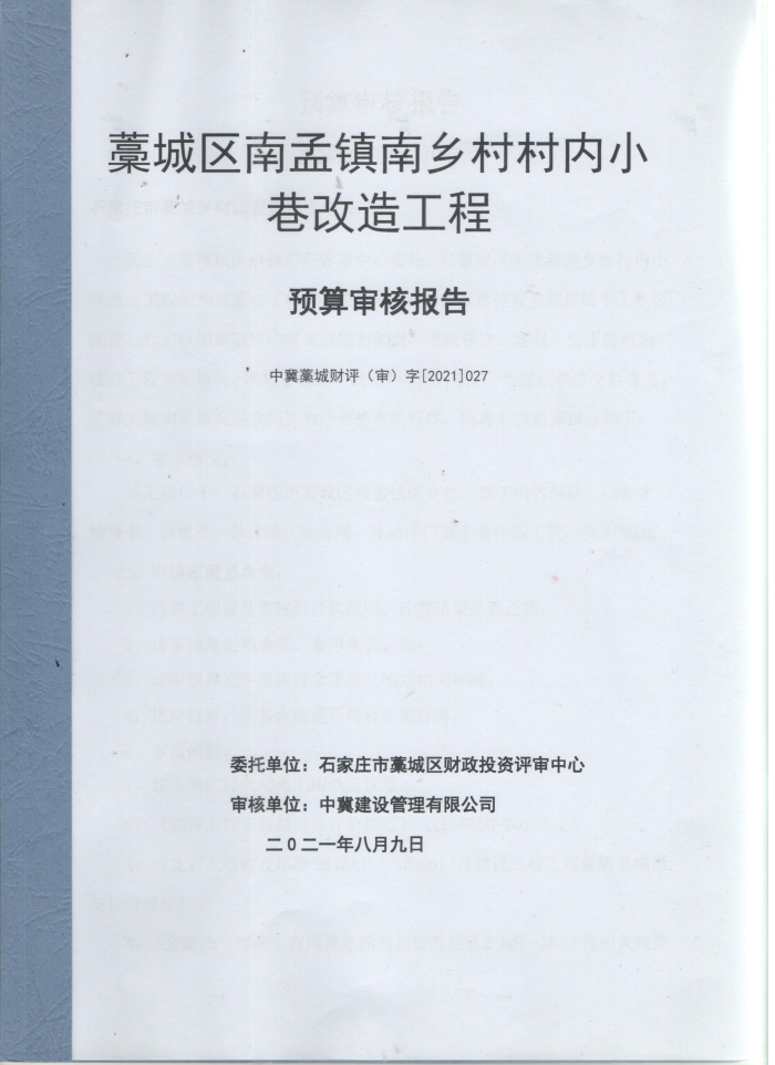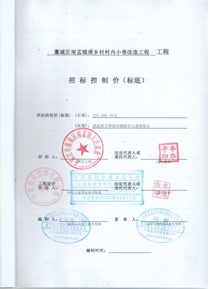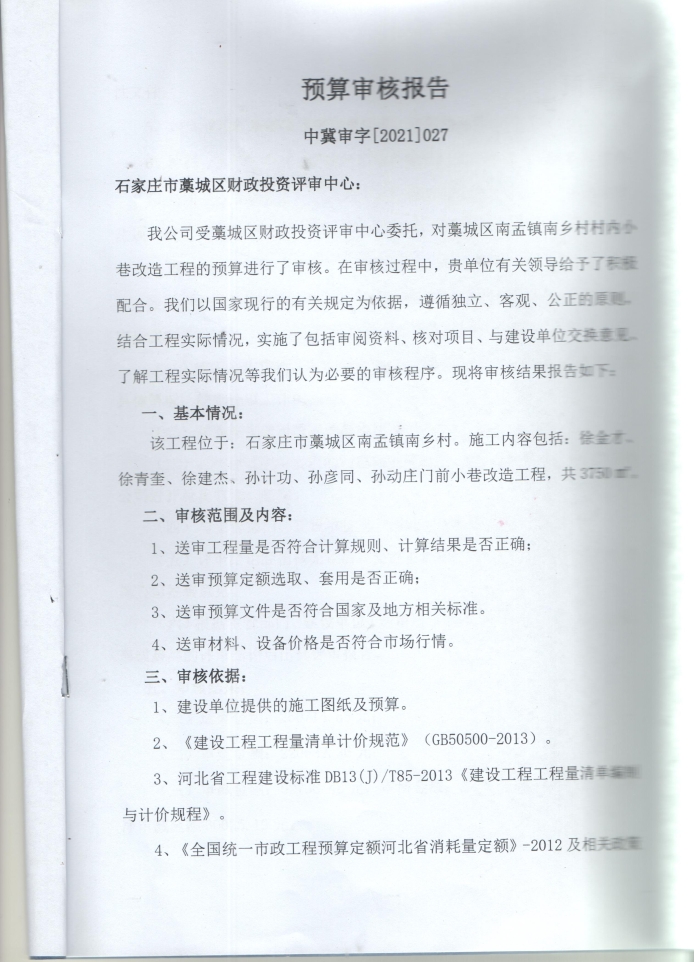 南乡村、九门村村内小巷硬化工程评审、招投标