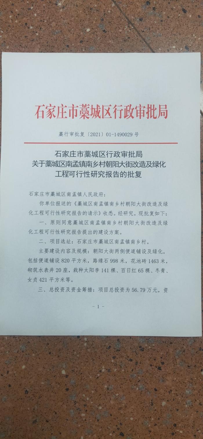 南乡村朝阳大街立项批复