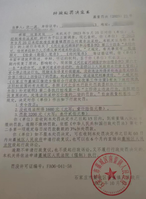 许一波未经批准非法采砂案
