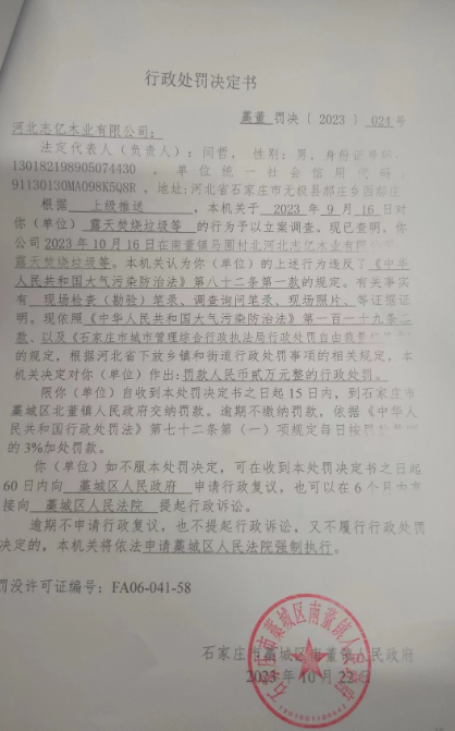 河北志亿木业有限公司露天焚烧垃圾案