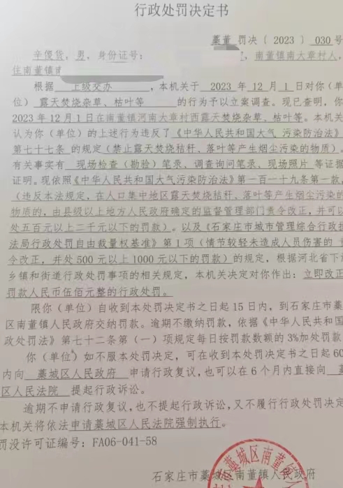辛傻货露天焚烧杂草、枯叶案