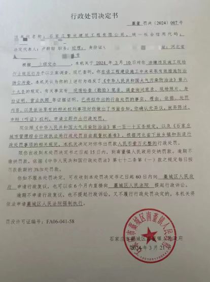 石家庄繁欣建筑工程有限公司违反施工现场作业案