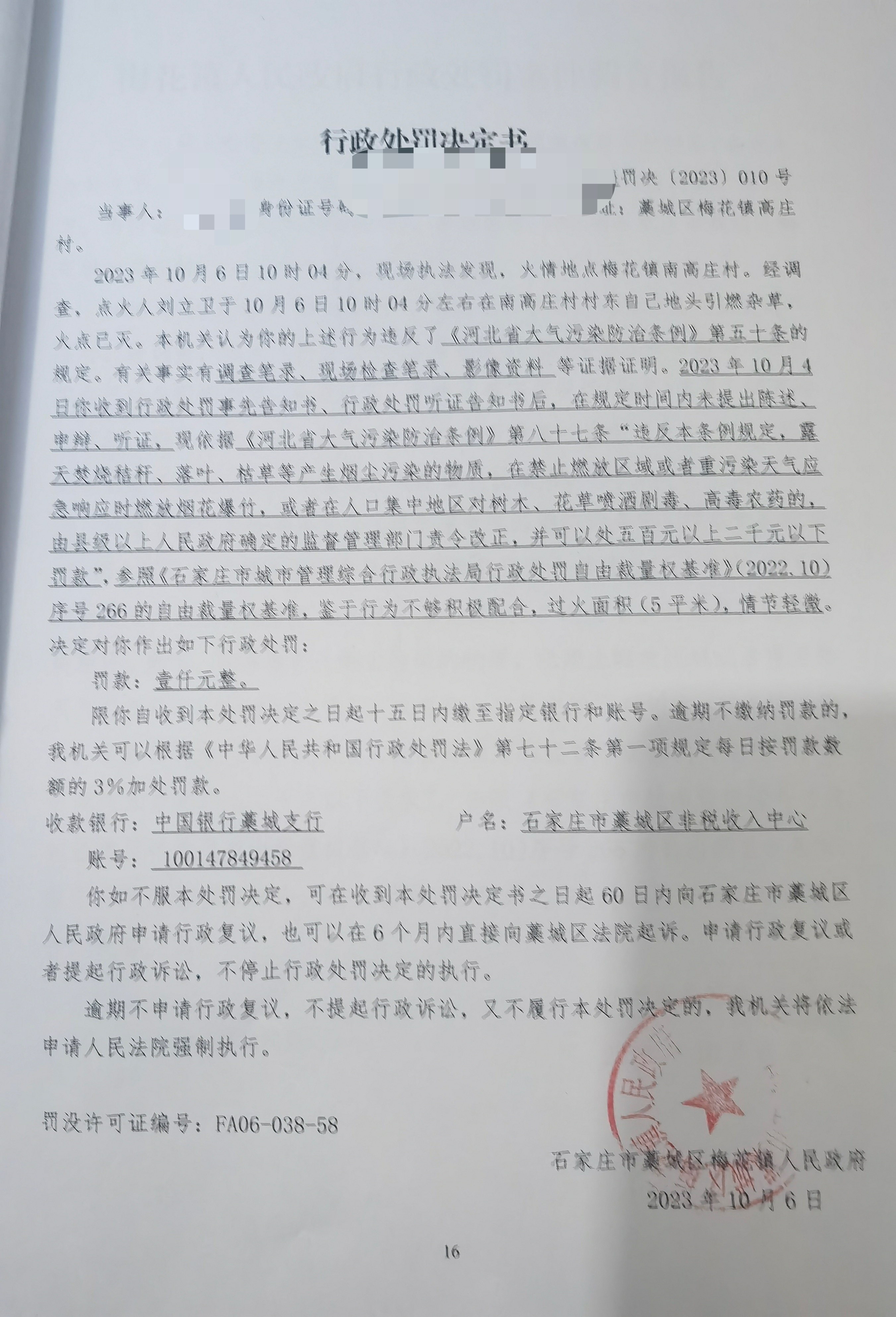 藁梅罚决〔2023〕010号