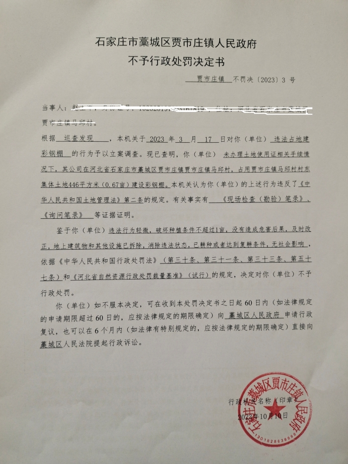 贾市庄镇罚决〔 2023〕3号