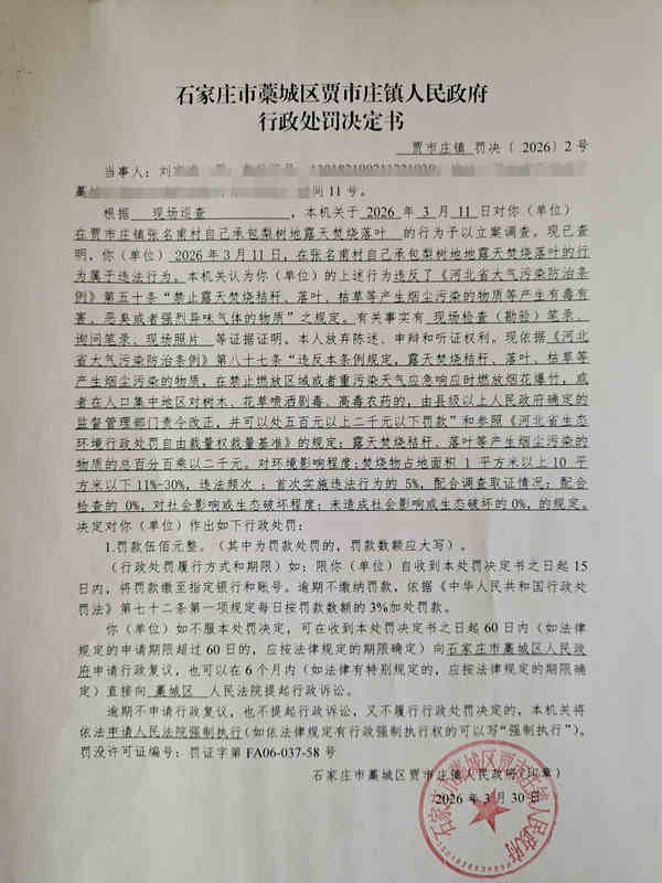 贾市庄镇 罚决〔 2026〕2号