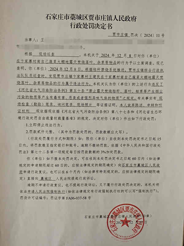 - 贾市庄镇罚决[2024]11号2024-12-17