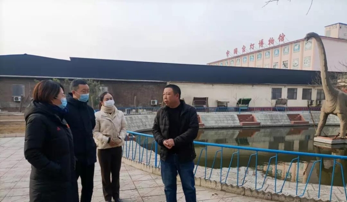 在藁城区宫灯博物馆,文广体旅局副局长张力等四人在宫灯博物馆负责人带领下,亲自对参观路线环境进行指导。并对相关位置提出整改意见,为更好展示藁城非遗项目做好准备工作。