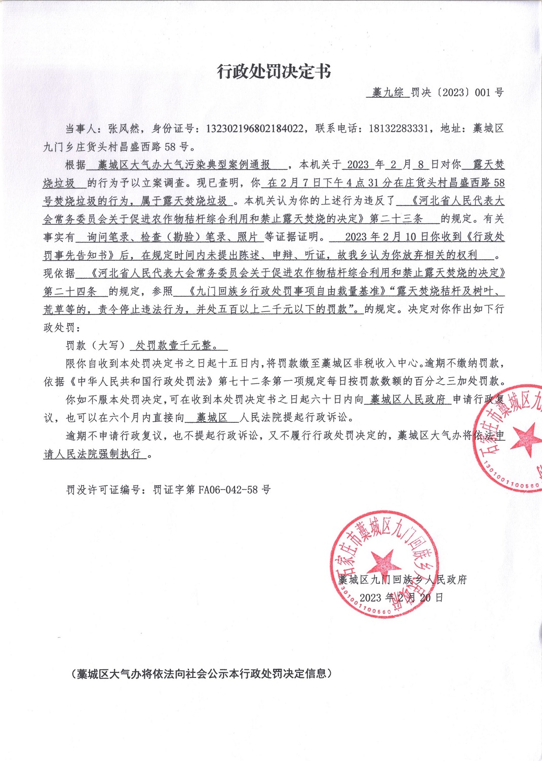 张风然燃烧垃圾案