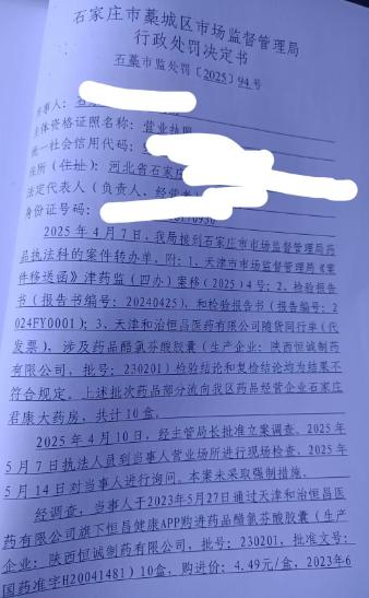 石家庄君康大药房销售劣药案 石藁市监处罚〔2025〕94号