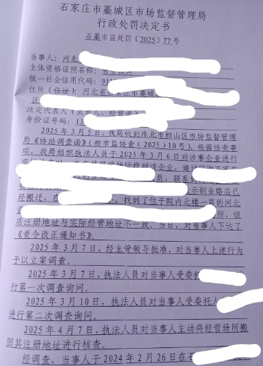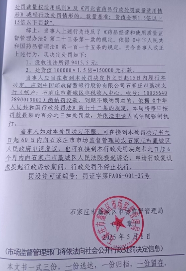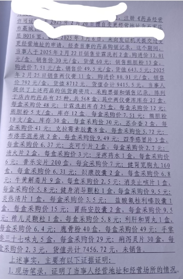 河北益丰生物医药有限公司石家庄创业路店未经批准擅自变更经营地址继续开展药品经营活动案 石藁市监处罚〔2025〕77号