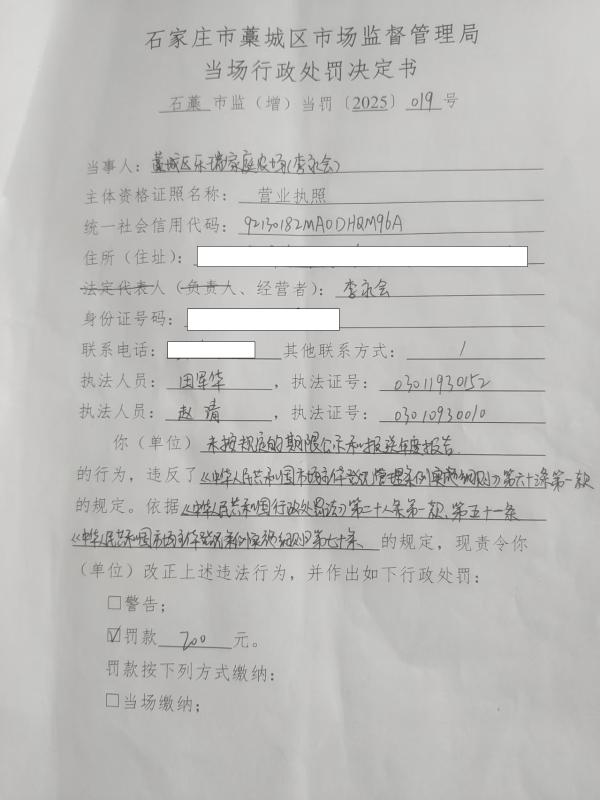 藁城区乐瑞家庭农场(李永会)未按规定的期限公示和报送2023年年度报告案