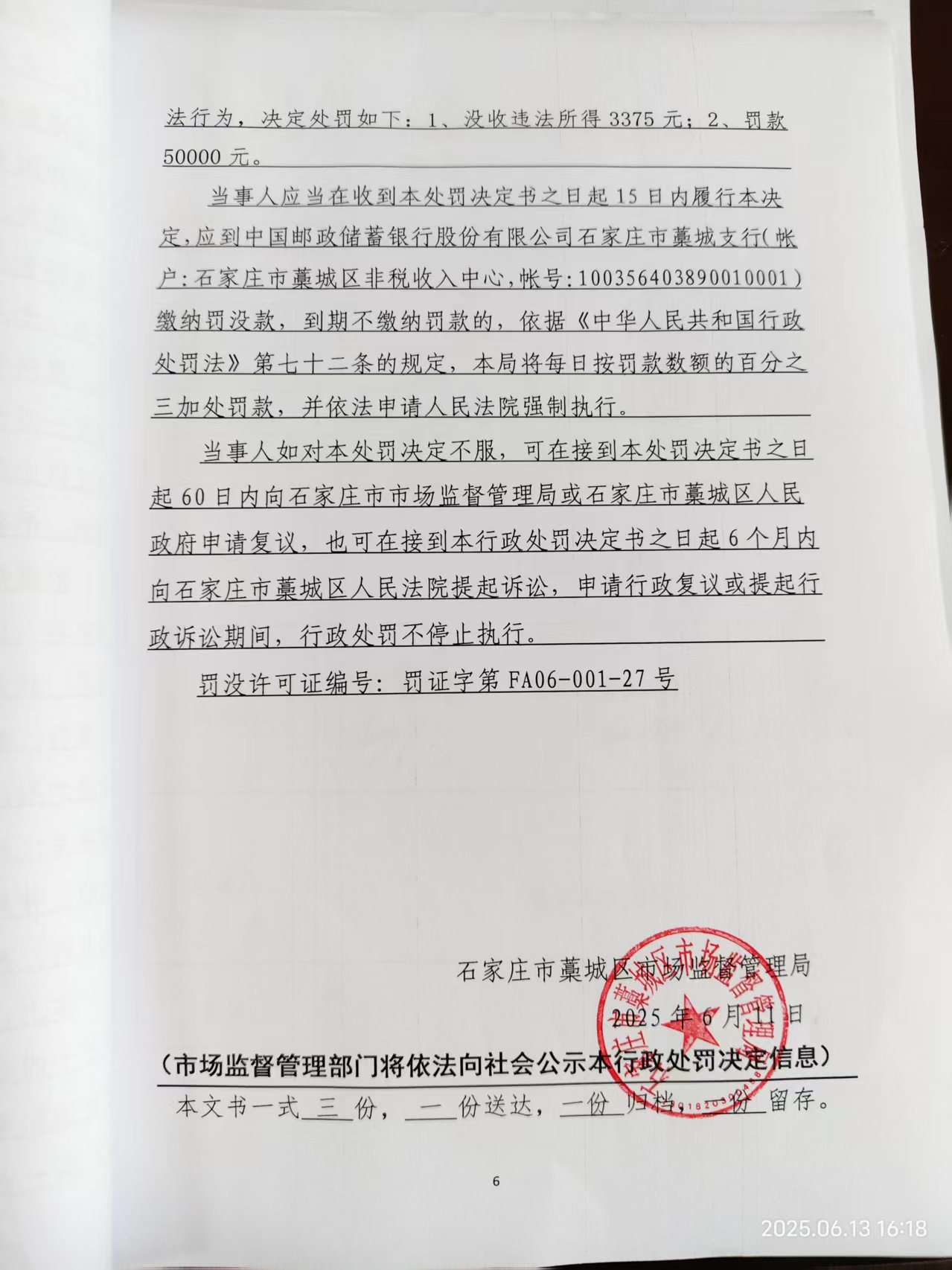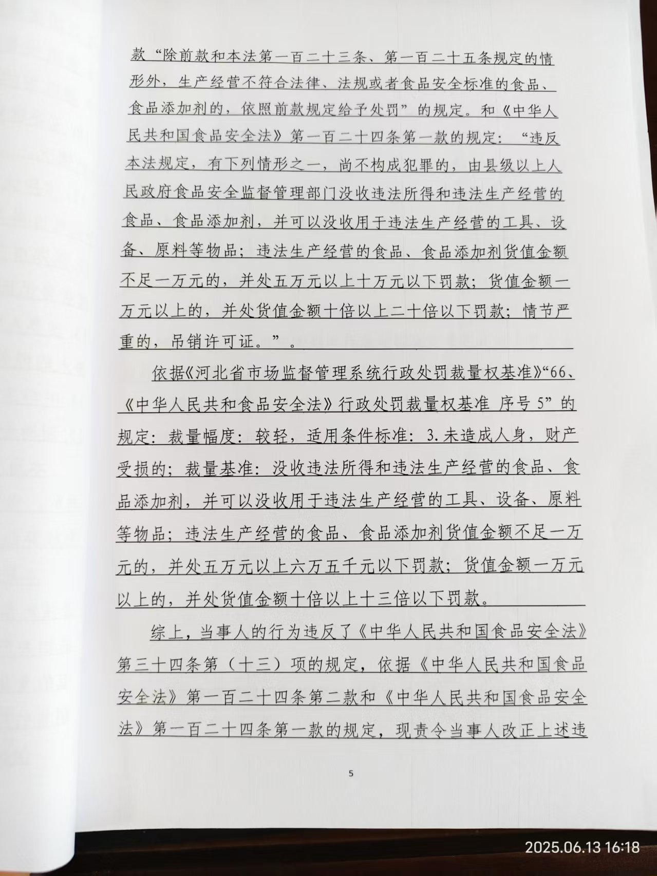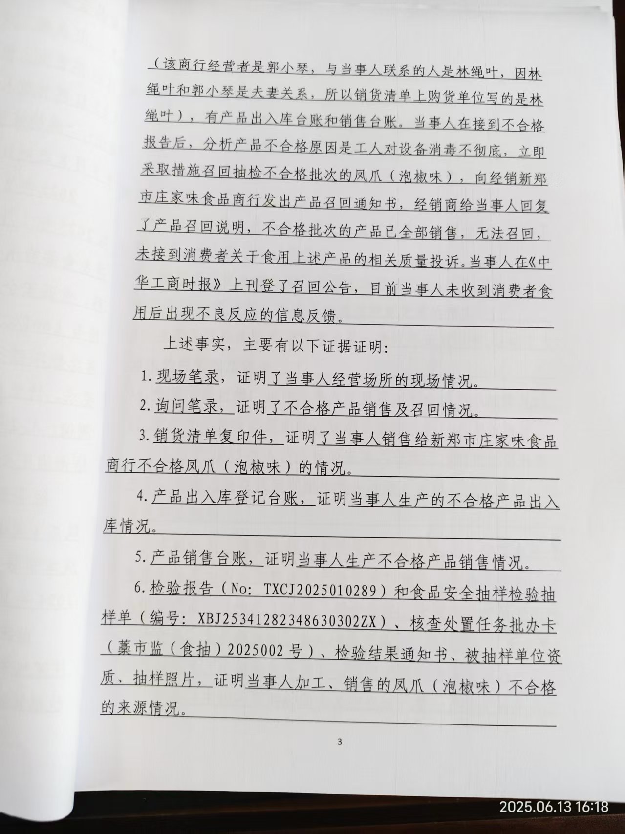 石家庄萍乡食品有限公司生产、销售不符合食品安全标准的凤爪(泡椒味)案 石藁市监处罚 〔2025〕102号