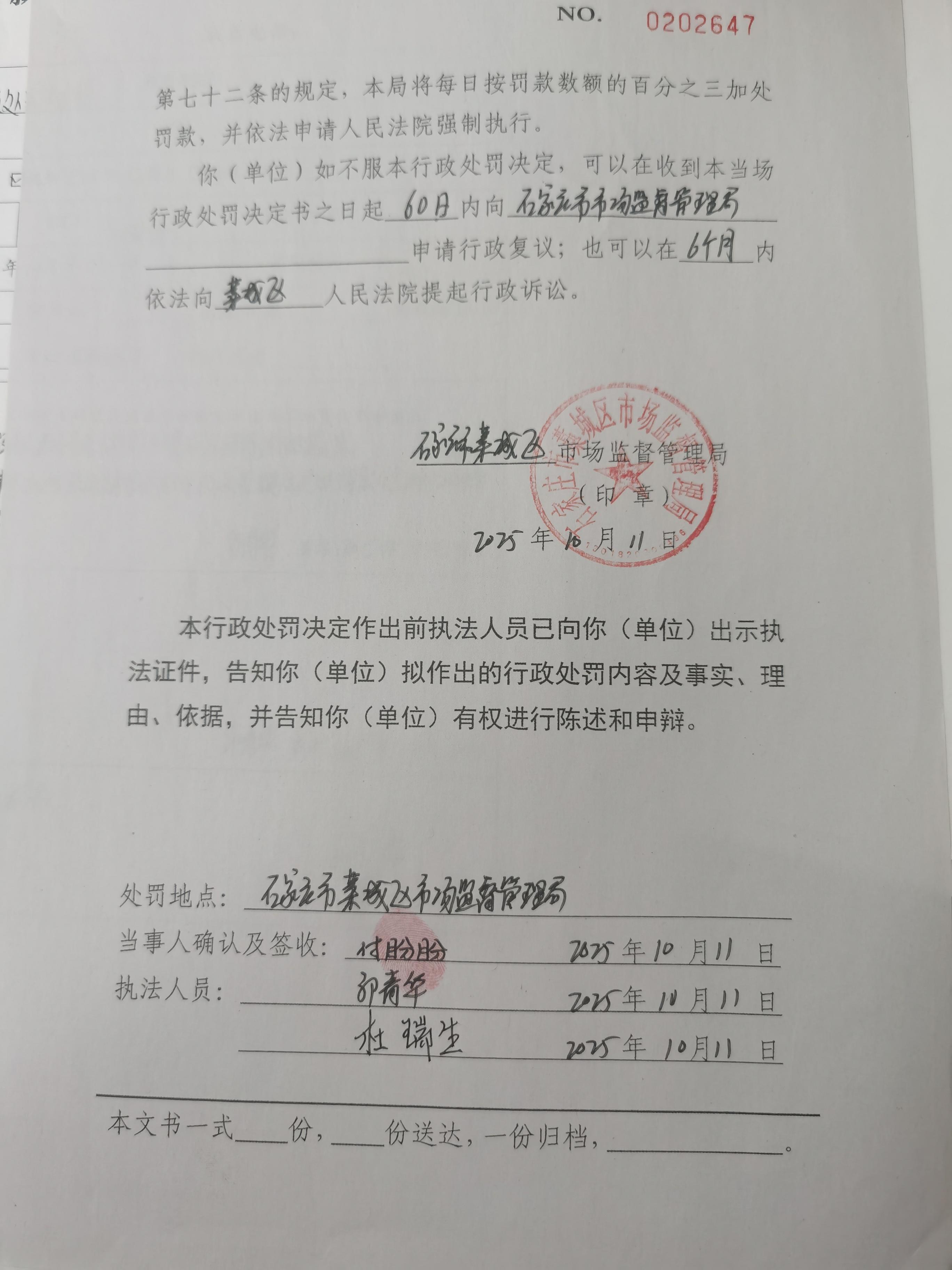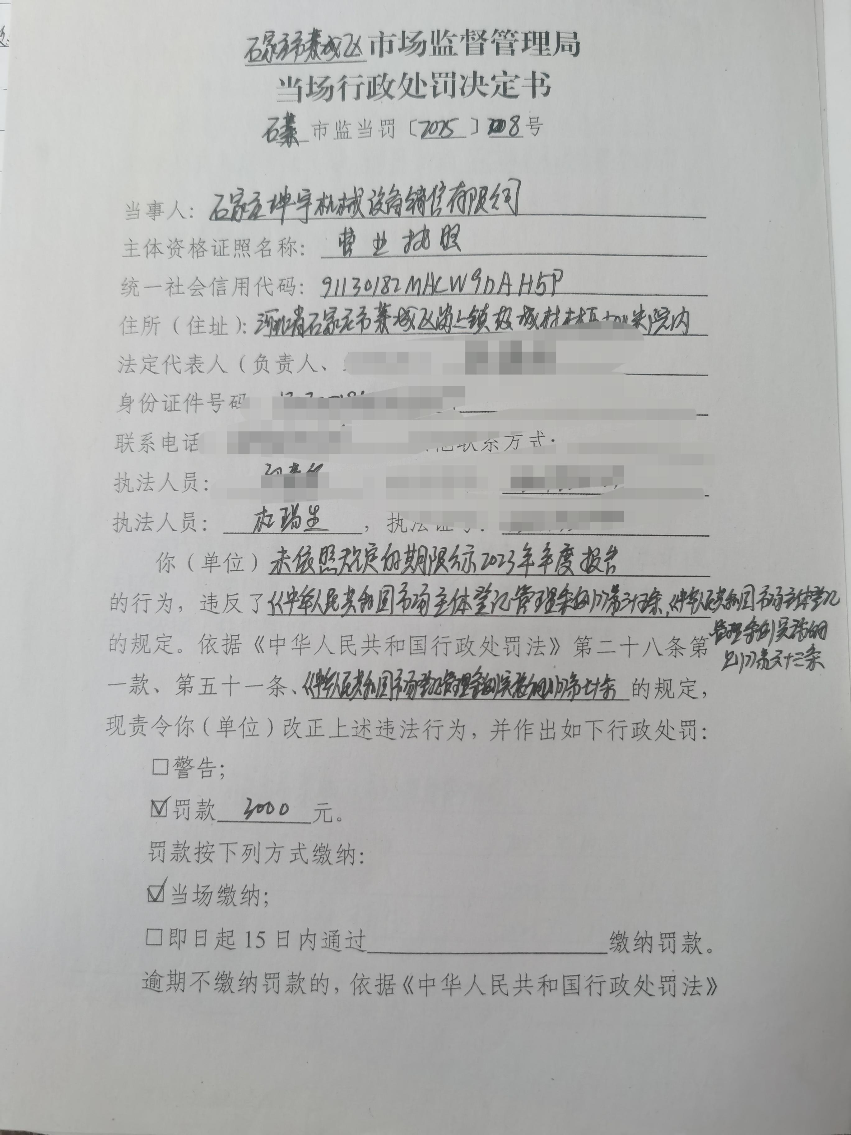 石家庄坤宁机械设备销售有限公司石藁市监(开)当罚(2025)108号