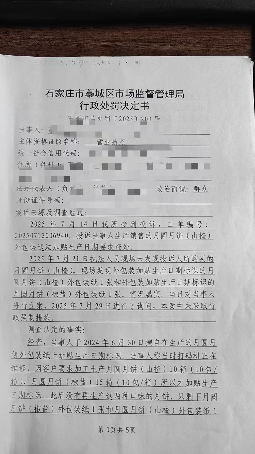 藁城区月圆糕点坊(黄晓伟)销售加贴日期标识的月圆月饼案