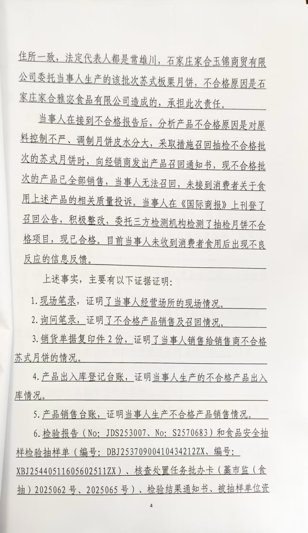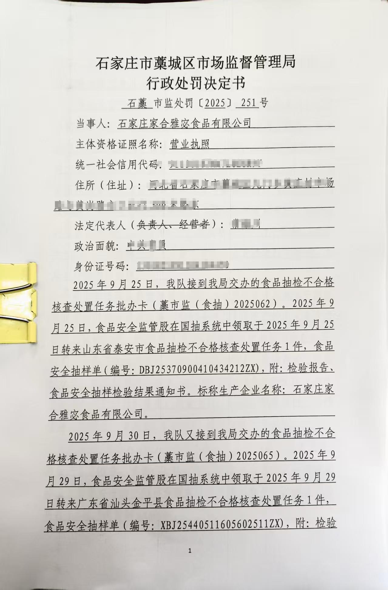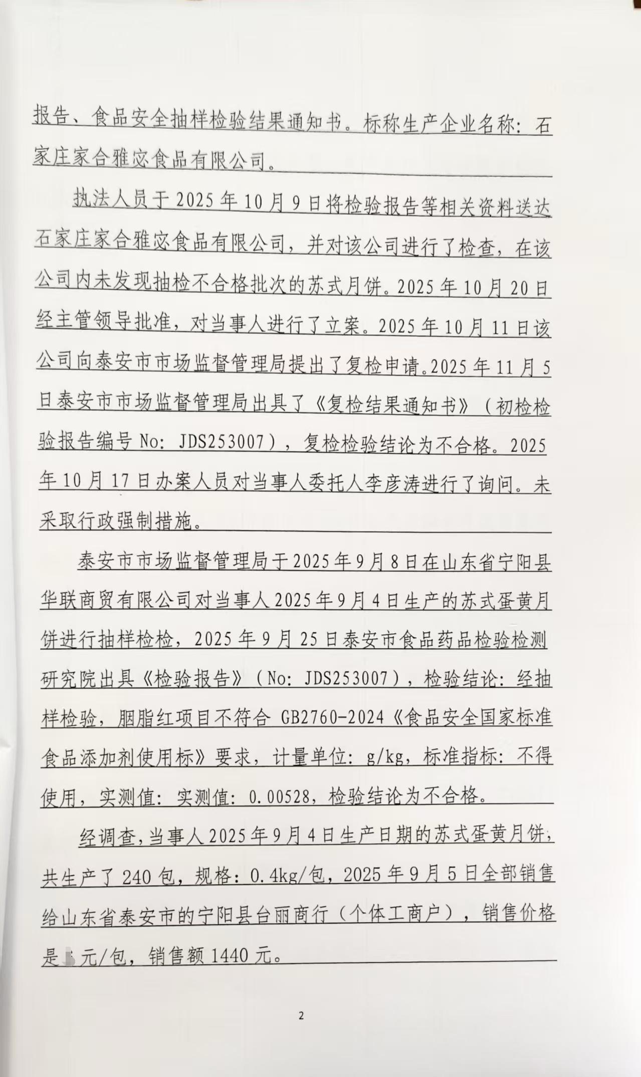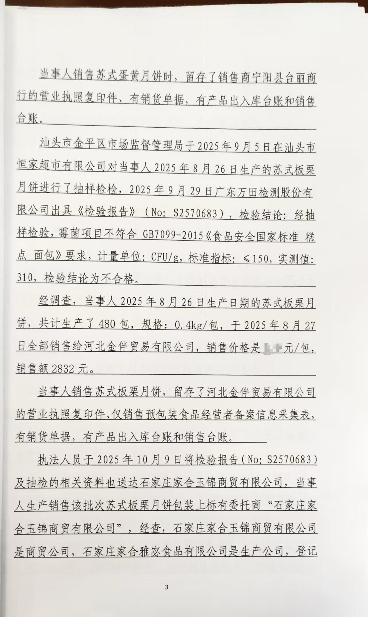 石家庄家合雅宓食品有限公司生产、销售不符合食品安全标准的苏式月饼案 石藁市监处罚(2025)251号