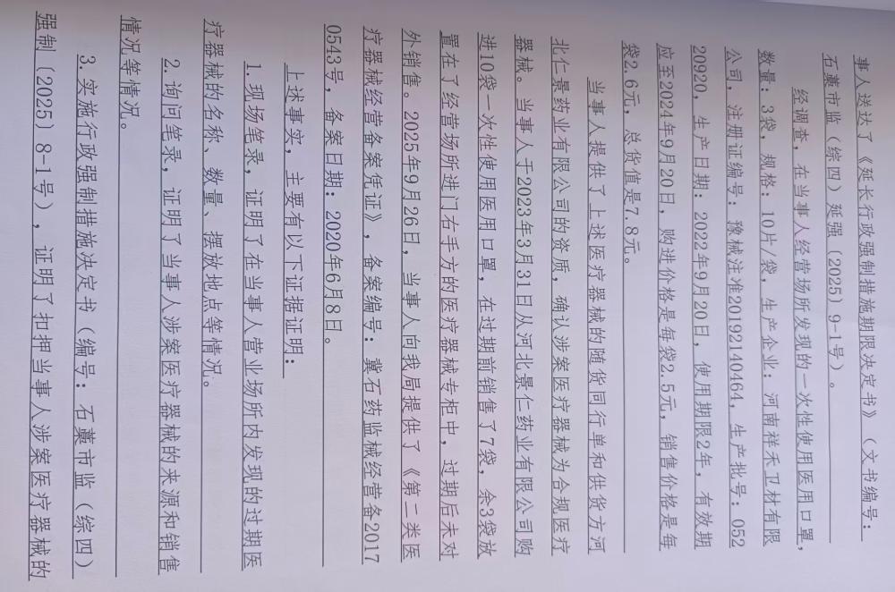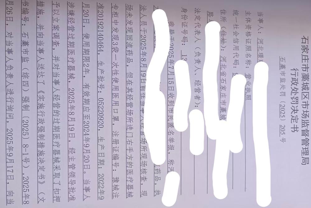 河北璟瑞大药房连锁有限公司石家庄藁城百信药房经营过期医疗器械案 石藁市监处罚〔2025〕205号