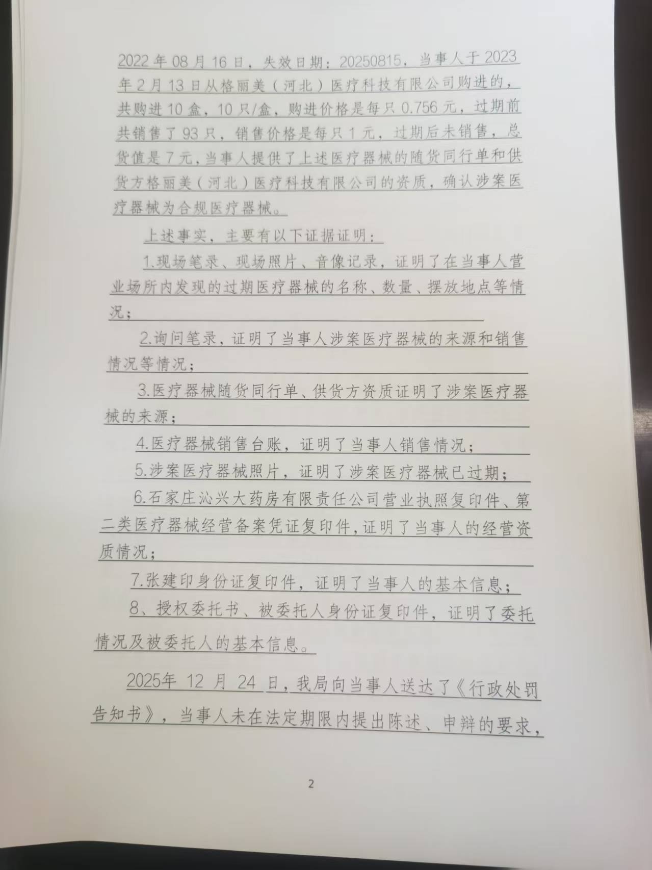 石家庄沁兴大药房有限责任公司经营过期医疗器械案行政处罚决定书