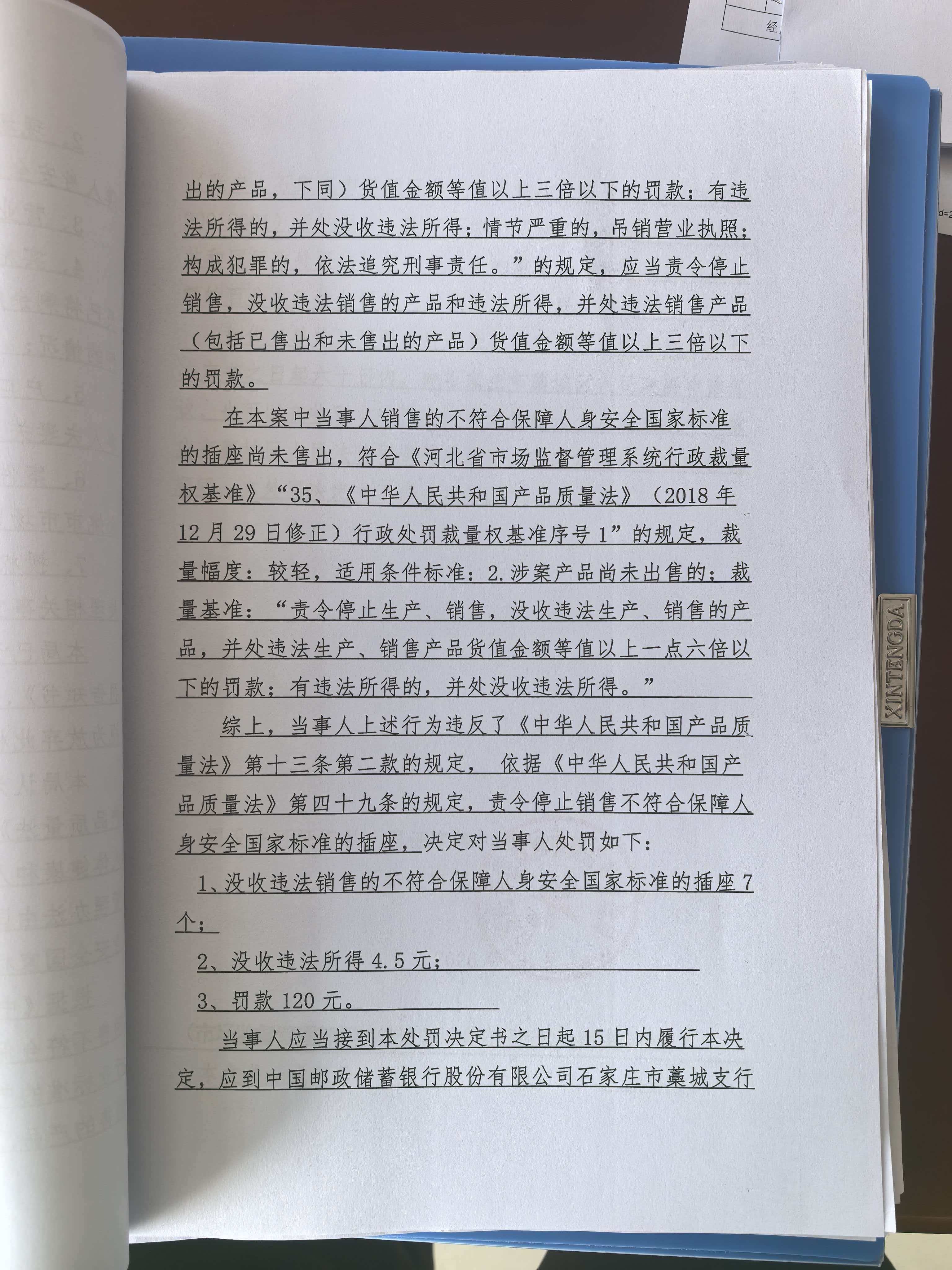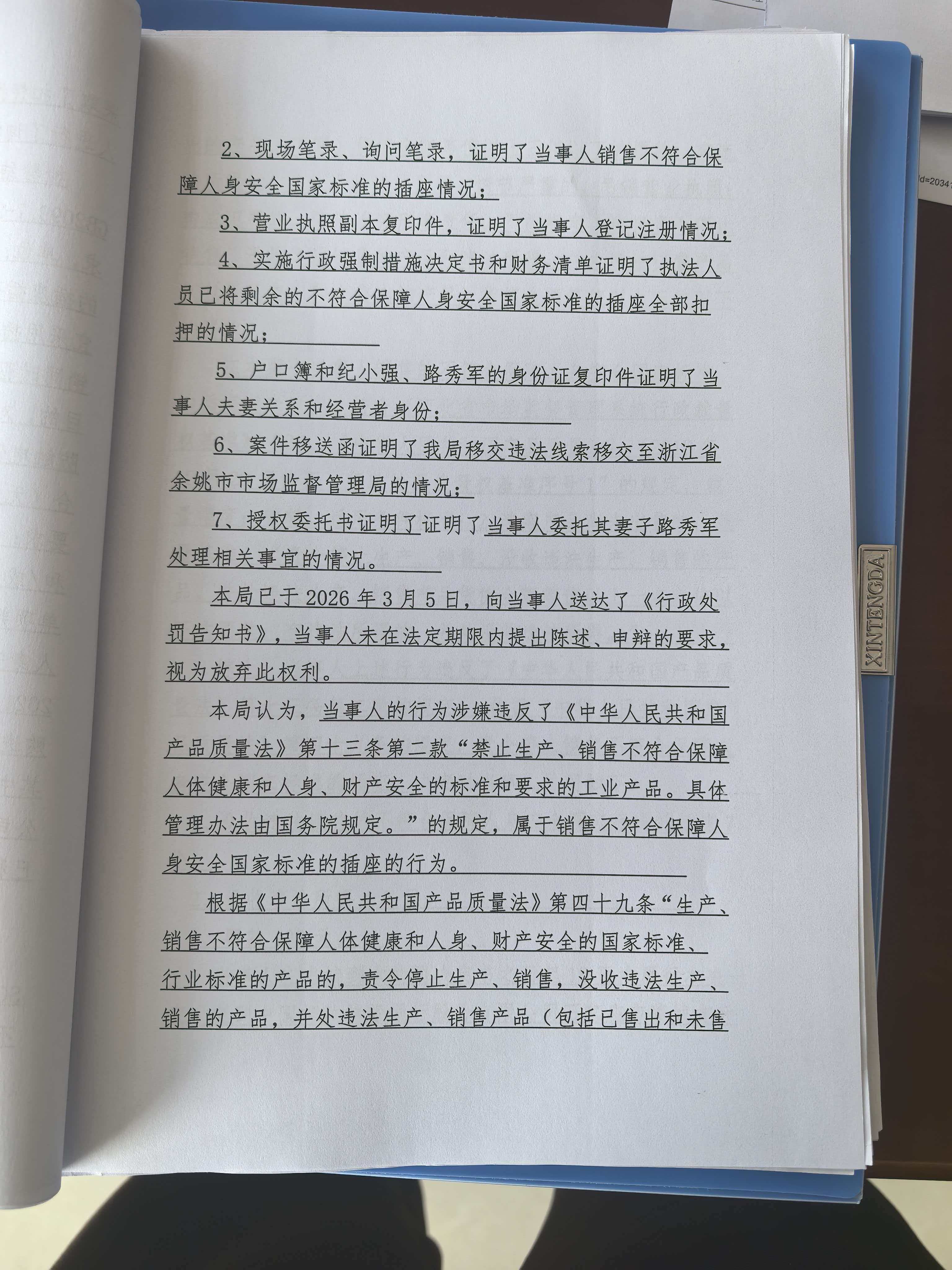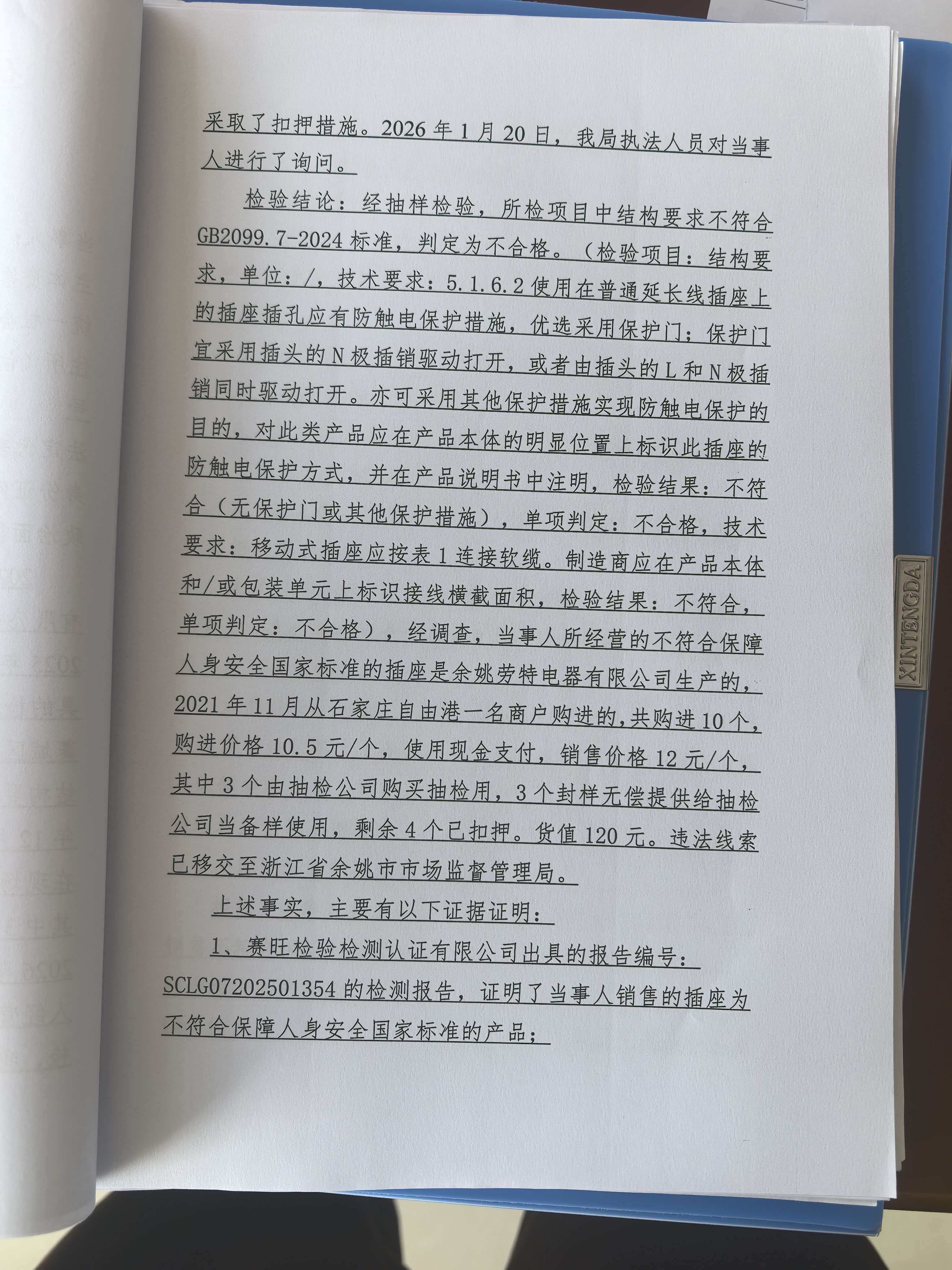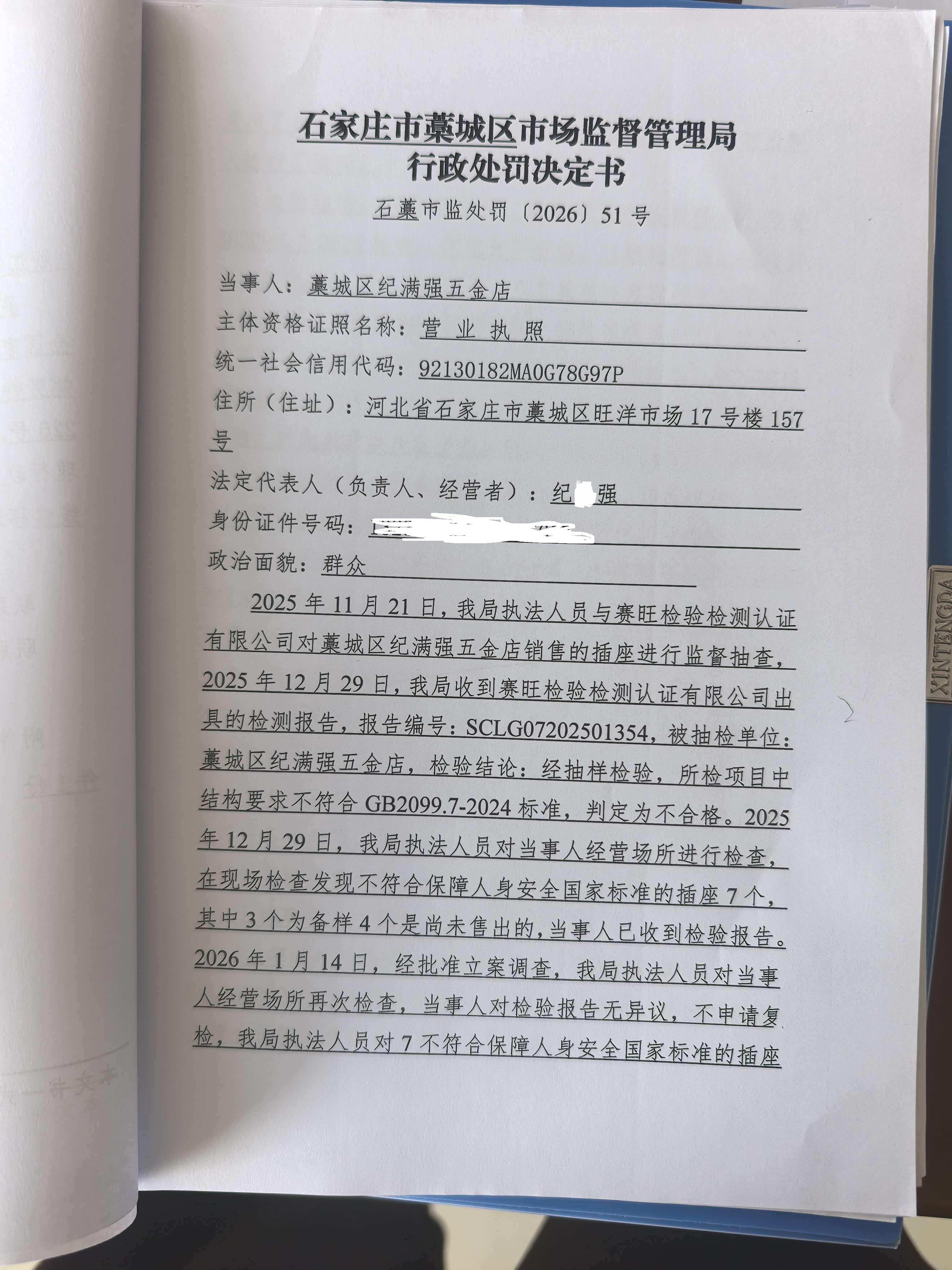 藁城区纪满强五金店(纪小强)销售不符合保障人身安全国家标准的插座案 石藁市监处罚〔2026〕51号