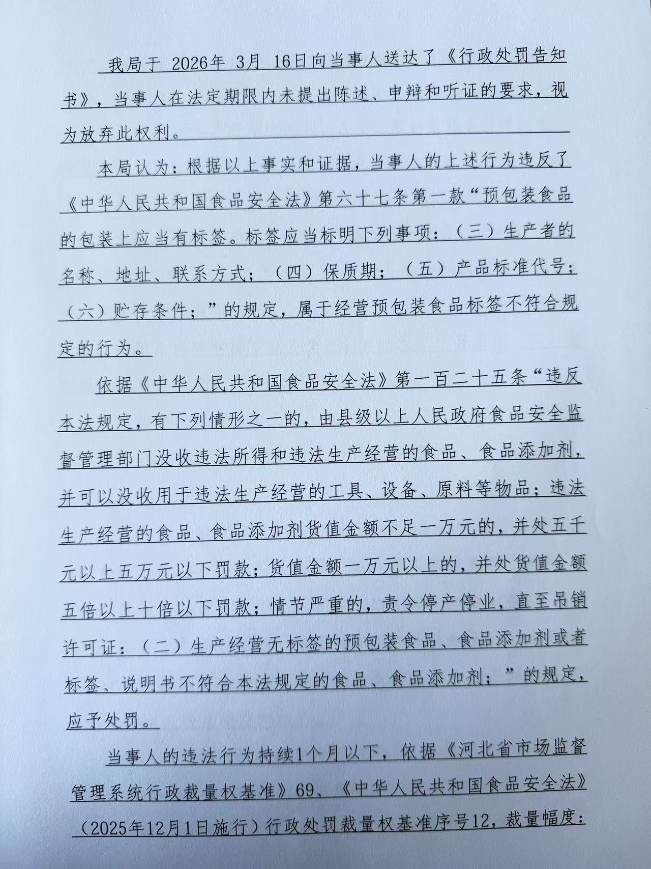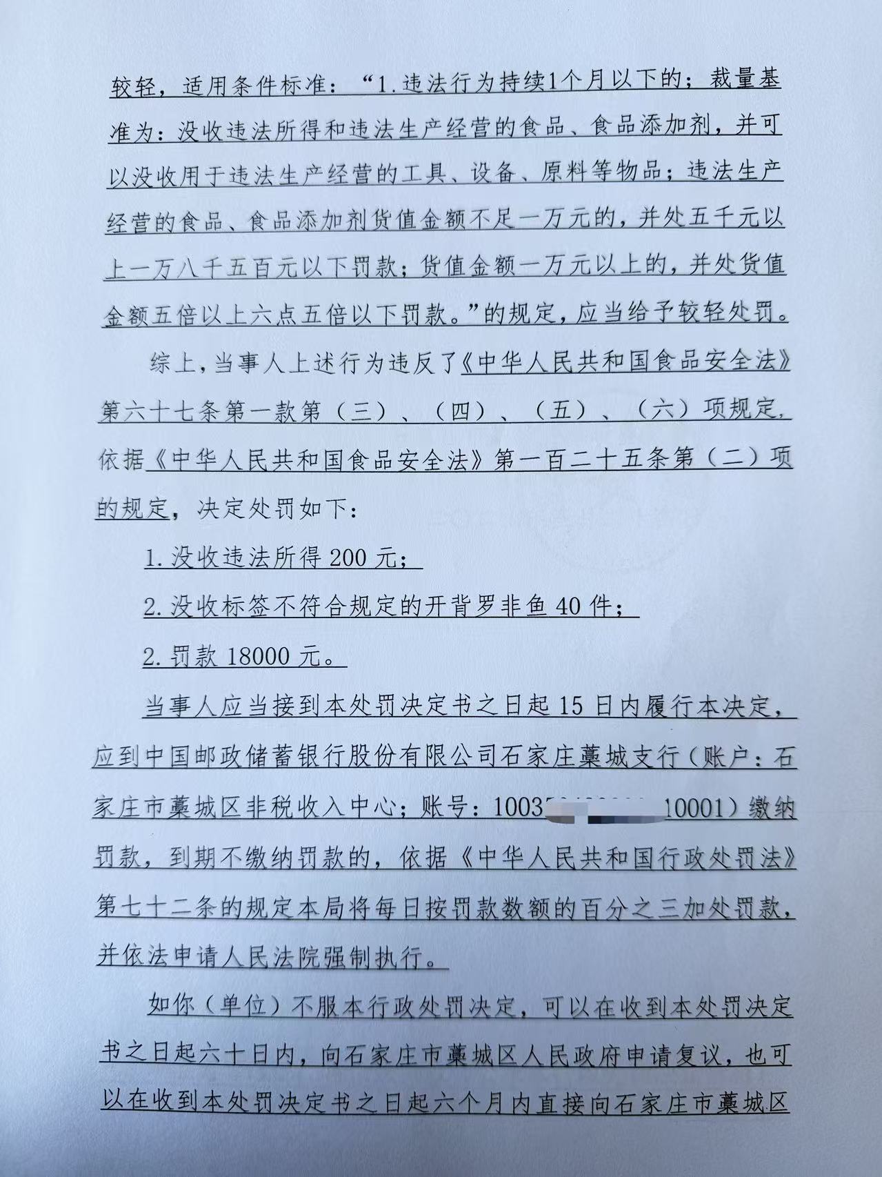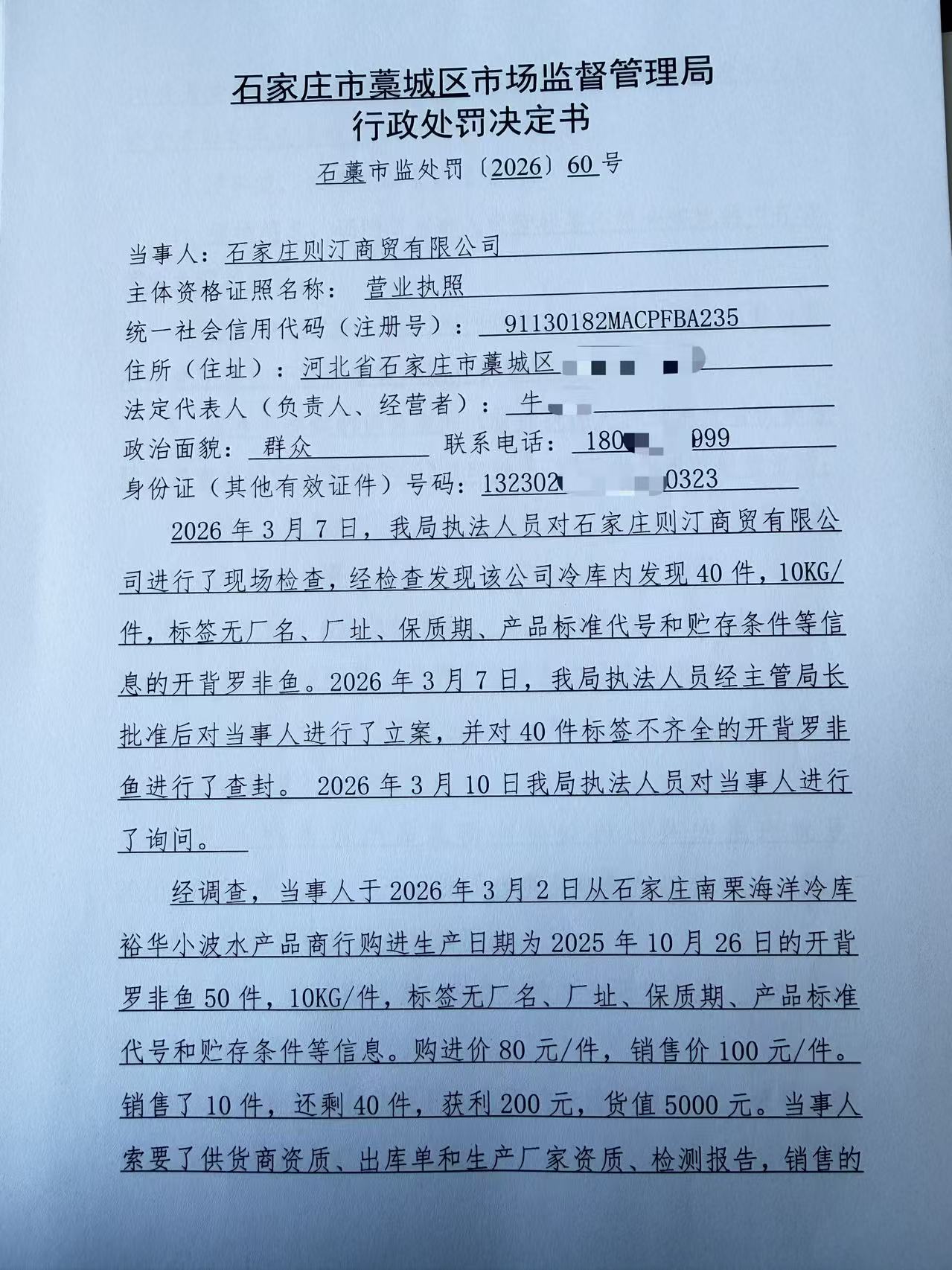 石家庄则汀商贸有限公司经营标签不符合规定的“开背罗非鱼”案 石藁市监处罚〔2026〕60号