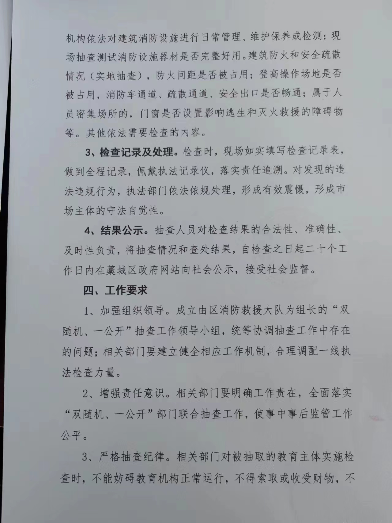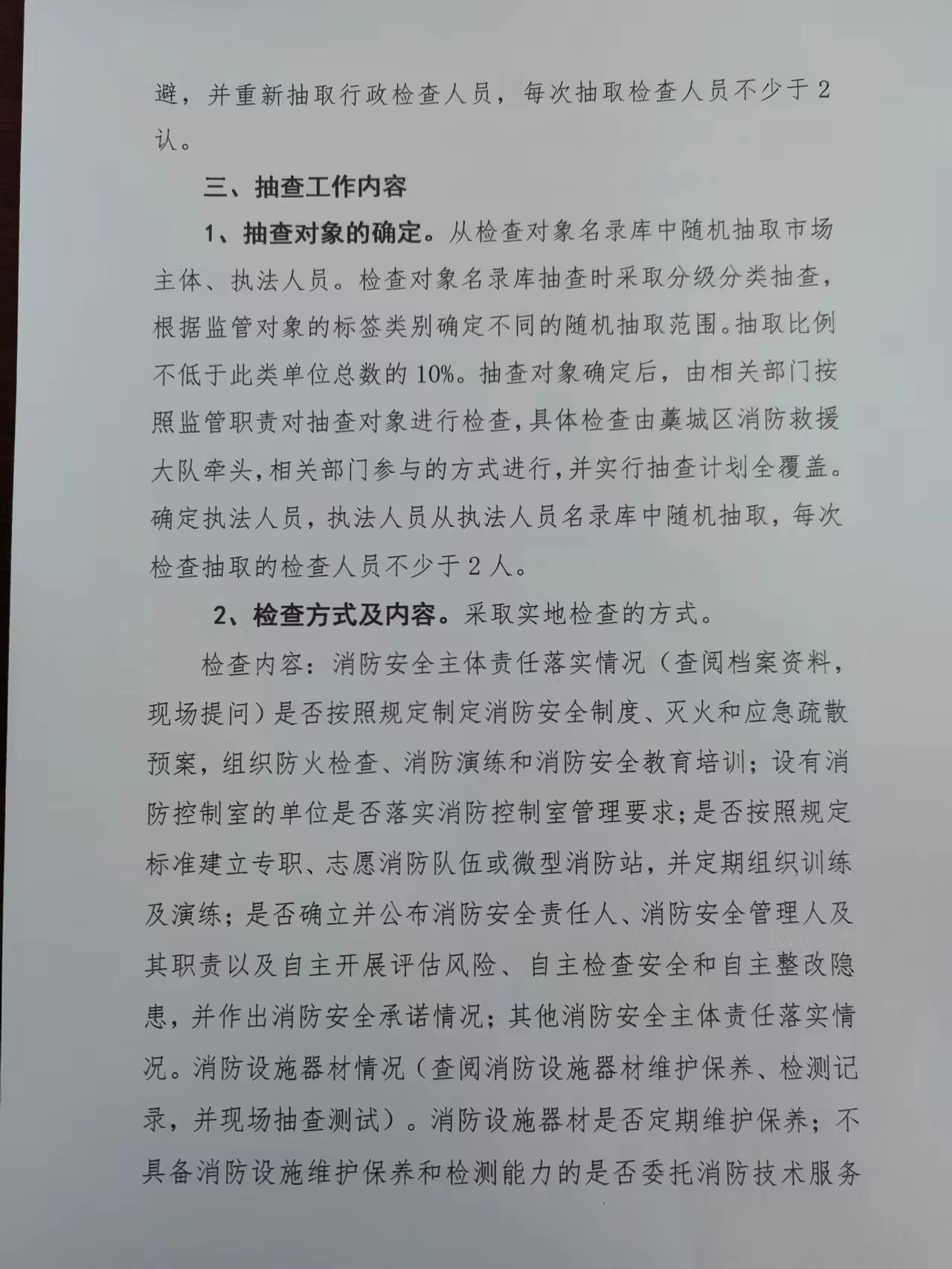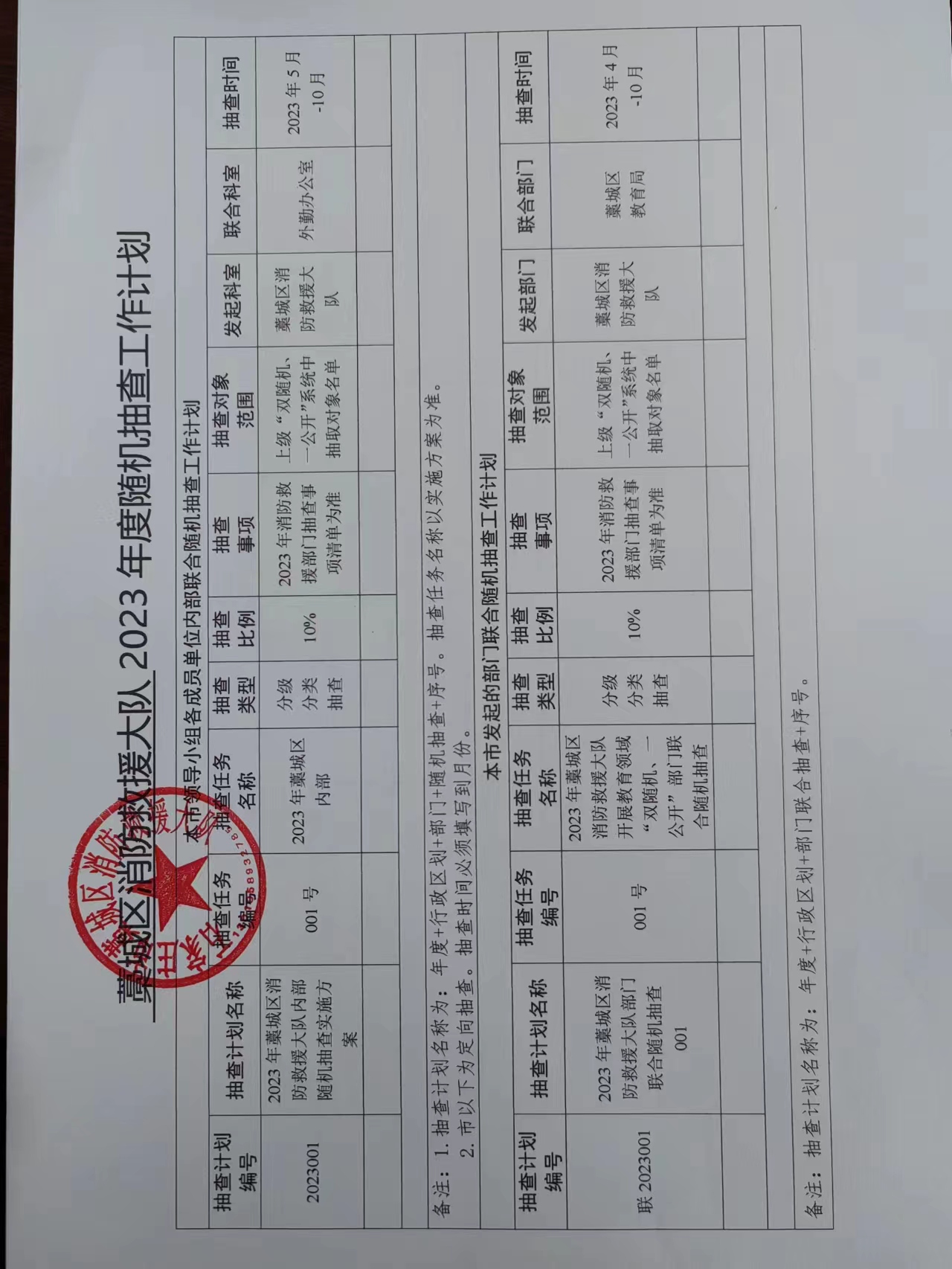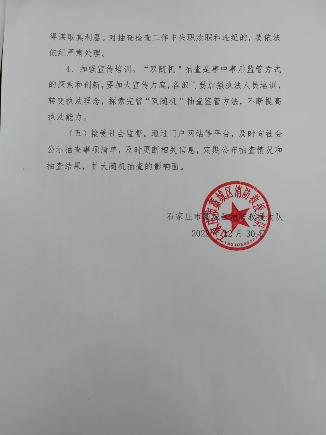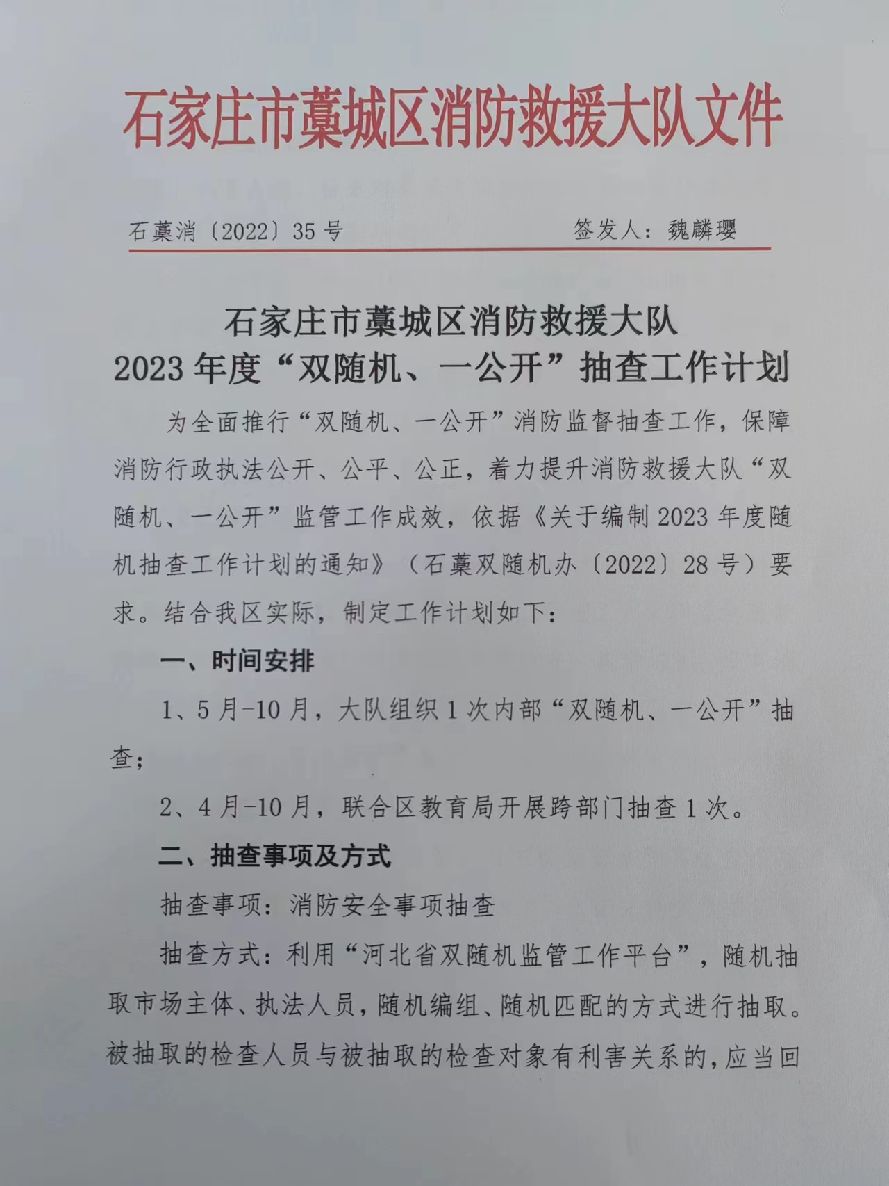 石家庄市藁城区消防救援大队2023年度“双随机、一公开”抽查工作计划