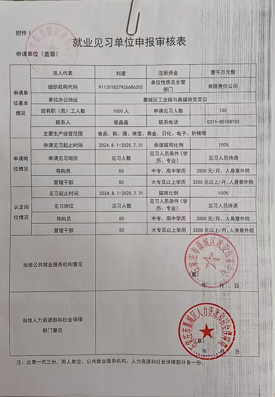 根据石家庄市人力资源和社会保障局石家庄市财政局关于印发《石家庄市就业见习实施办法》通知【