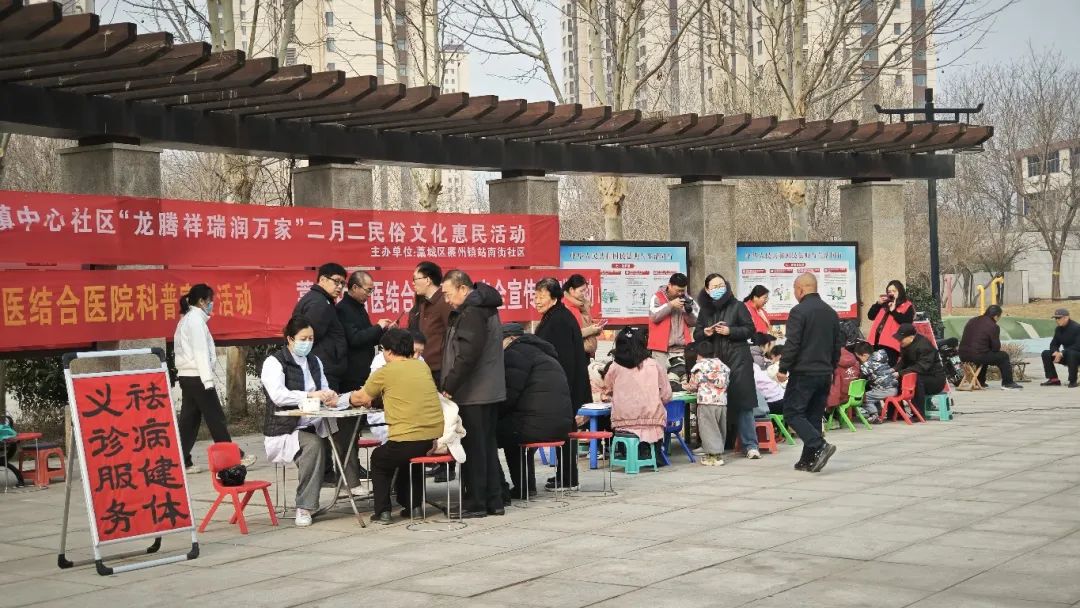 活动现场热闹非凡,吸引了众多居民参与。在义剪专区,志愿者理发师为60岁以上老人提供免费理发服务,寓意“二月二剃龙头,一年都有精神头”,在理发师的巧手下,老人们精神面貌焕然一新,脸上洋溢着满意的笑容。在义诊服务区,区中医院医生为居民们免费测量血压、血糖,并提供健康咨询和用药指导。在民俗体验区,小朋友积极参与非遗糖画制作和五谷绘龙纹活动,感受传统文化的魅力。戏曲专场演出精彩纷呈,站南街社区评剧戏曲社带来了器乐合奏、三春杨柳、见皇姑等经典曲目,赢得了观众的阵阵掌声。